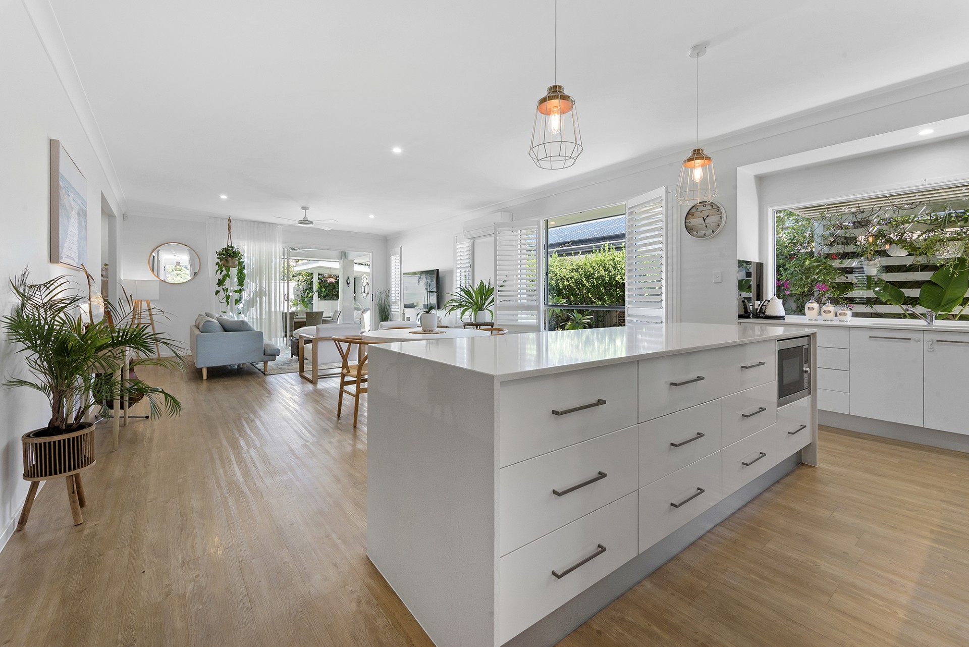 Step inside this inviting residence to be greeted by a wealth of features designed for comfort and style. The expansive western facing front deck sets the scene for outdoor entertaining on a grand scale, perfect for hosting gatherings or simply unwinding in the fresh sea breeze watching the sunset. Imagine relaxing in the shade of the undercover gazebo, sipping your morning coffee as you overlook the sparkling pool, enveloped by the sweet scent of jasmine flowering vines that encircle the property, ensuring privacy and tranquillity.