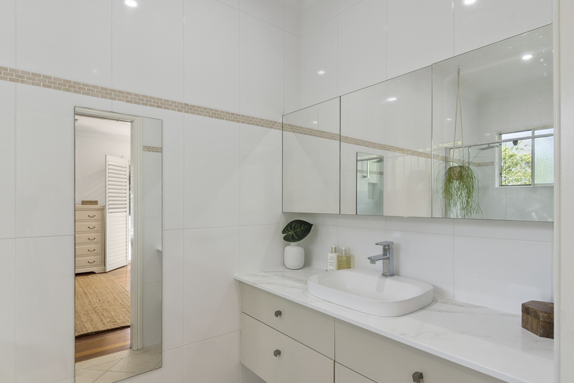 ~ The ensuite has a dual shower, stone top vanity, heated towel rail and underfloor heating.
