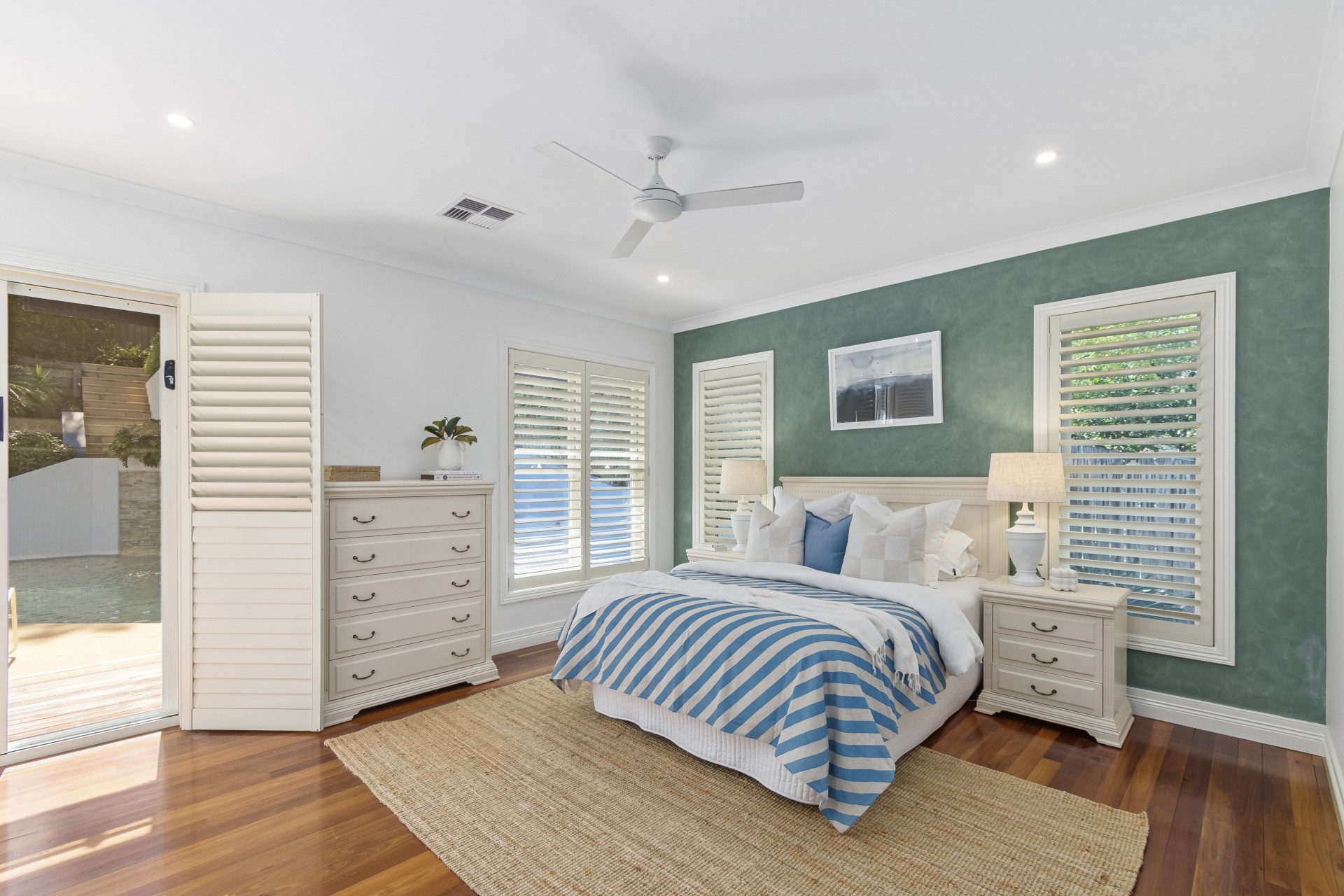 ~ Serene Master bedroom with views to the pool, framed by tropical gardens and opens onto the pool for a private dip in the inviting saltwater pool.