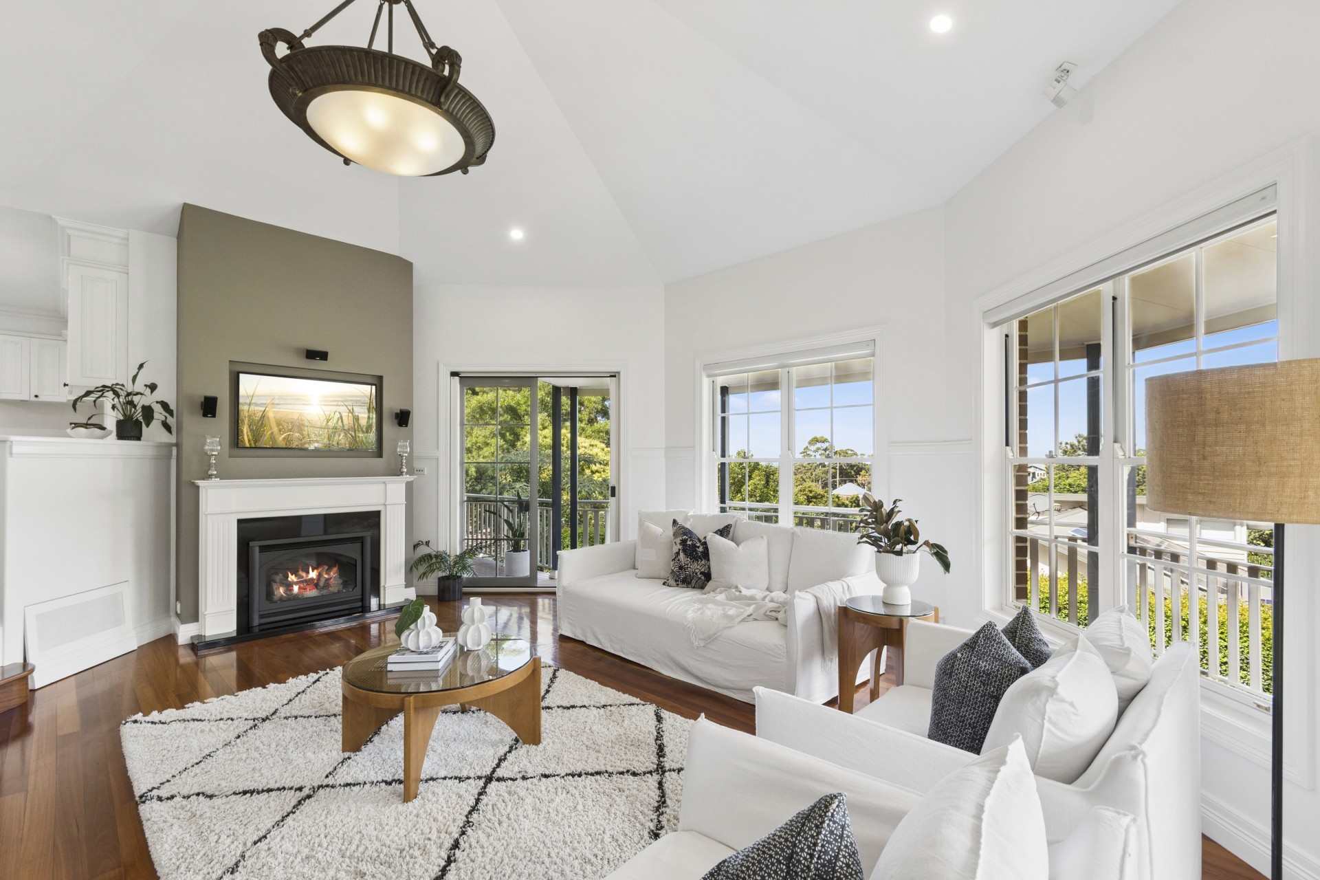 ~ Sunken living room with cathedral ceiling feature, cosy gas fireplace and Bose surround sound.