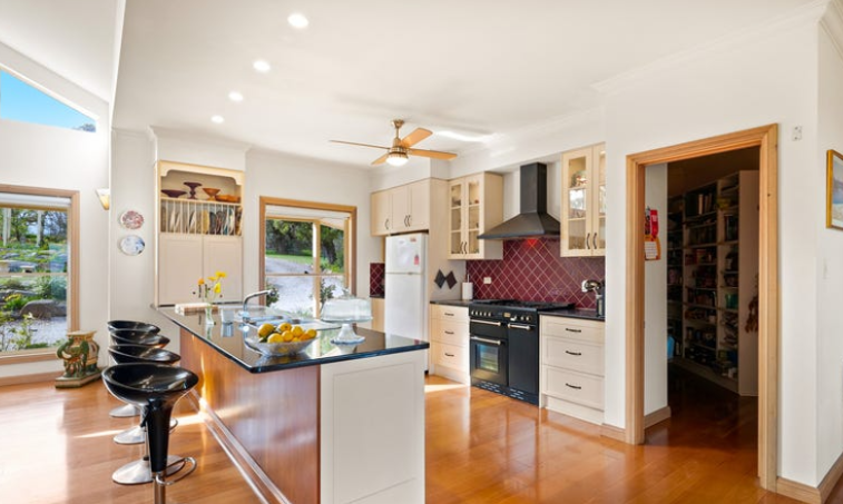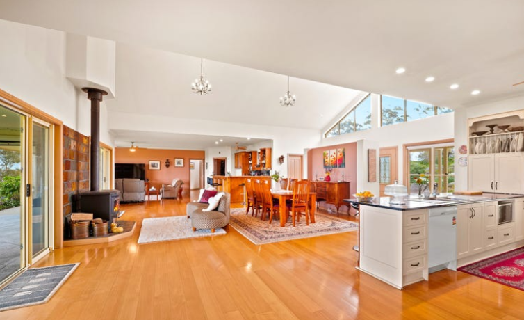 The house is made up of large rooms with high ceilings and open plan central living area. There is a laundry large enough to satisfy anyone, a butler's pantry, a wine closet and four bedrooms. The shed is enormous with a toilet and shower and plenty of room for storage.
