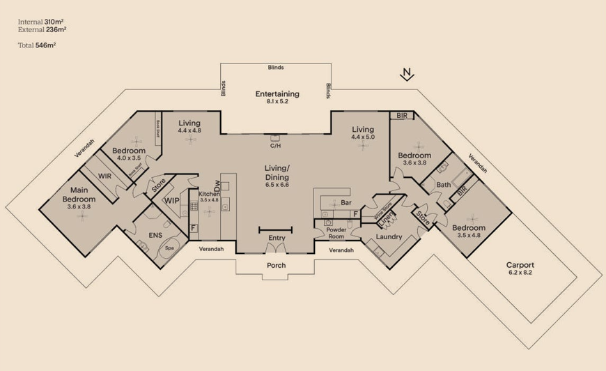 We wanted a house that allowed sunshine in during the winter and shade in the summer and after living in a south facing home for over 30 years, we wanted sunshine. To achieve this, we needed a north facing home but all the views were south of the house. Not to worry with the help of a brilliant home designer we got a house with south and north facing windows.