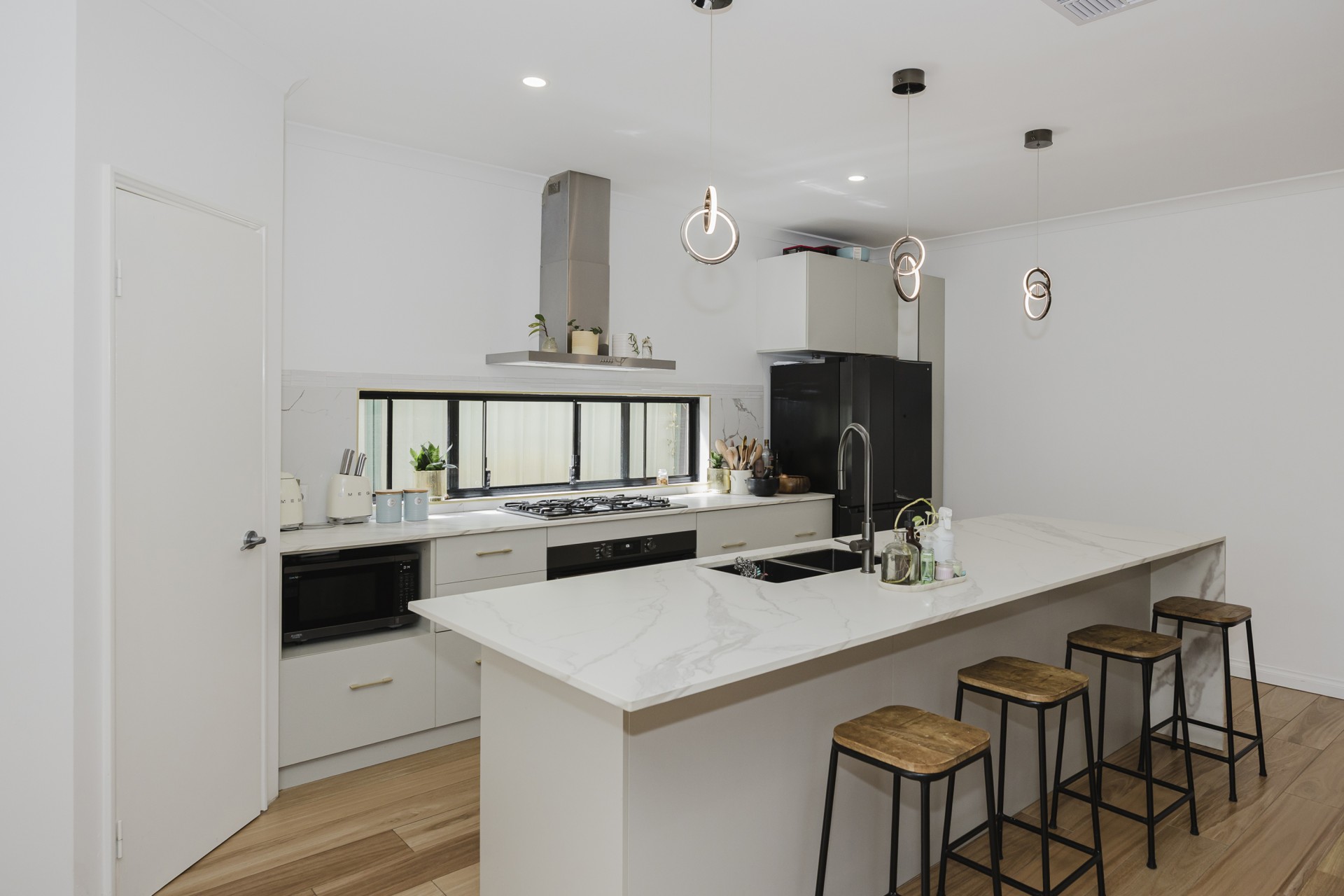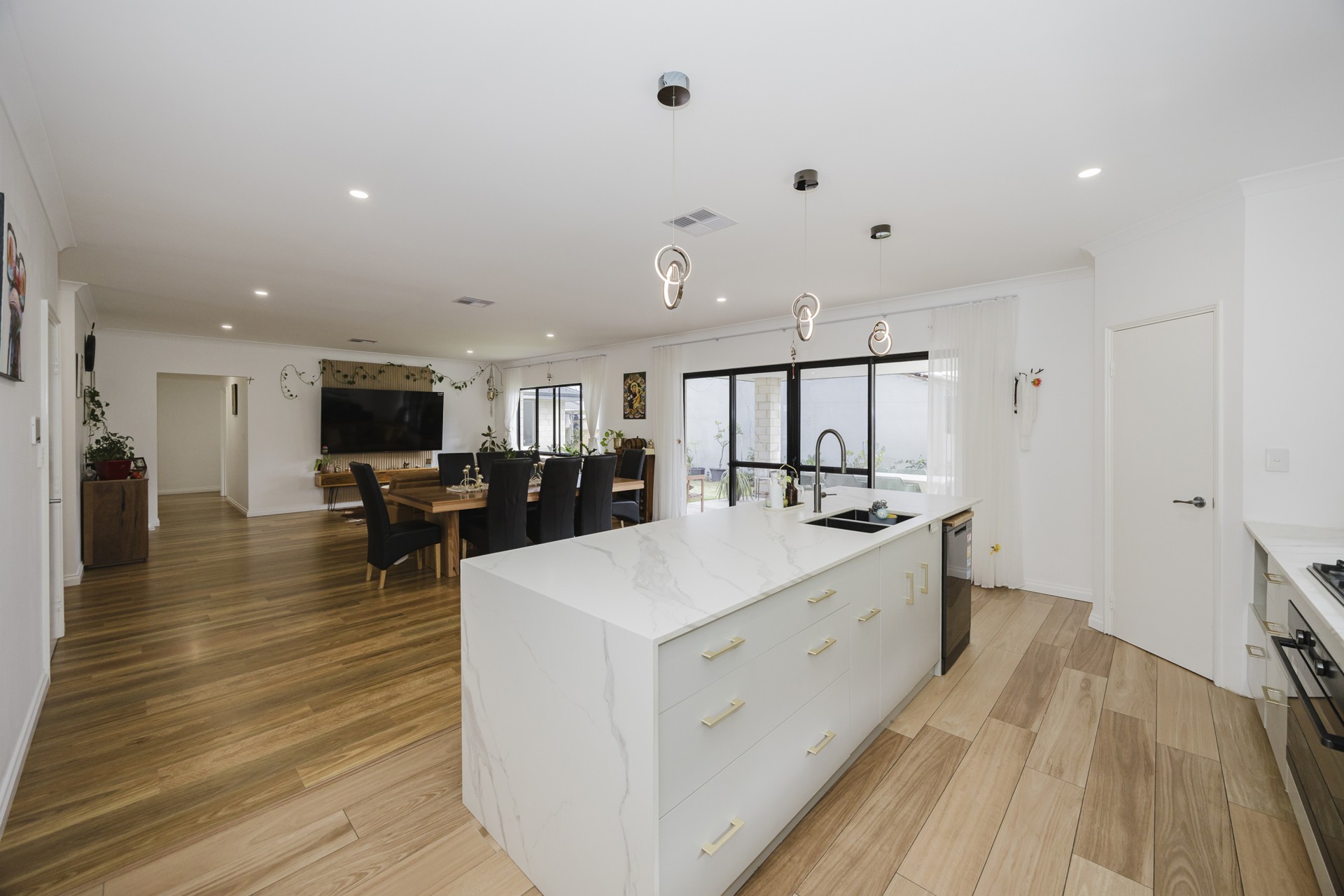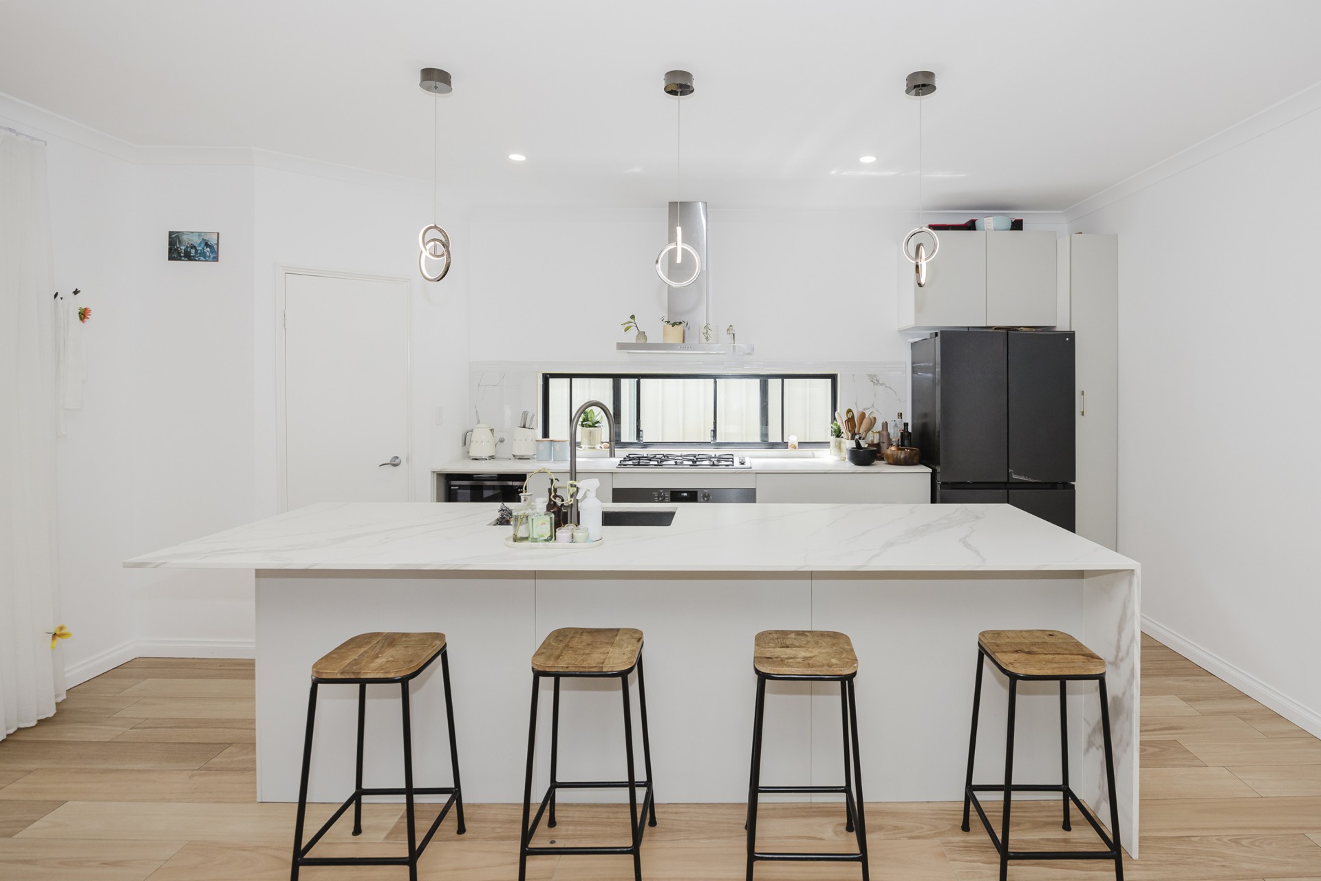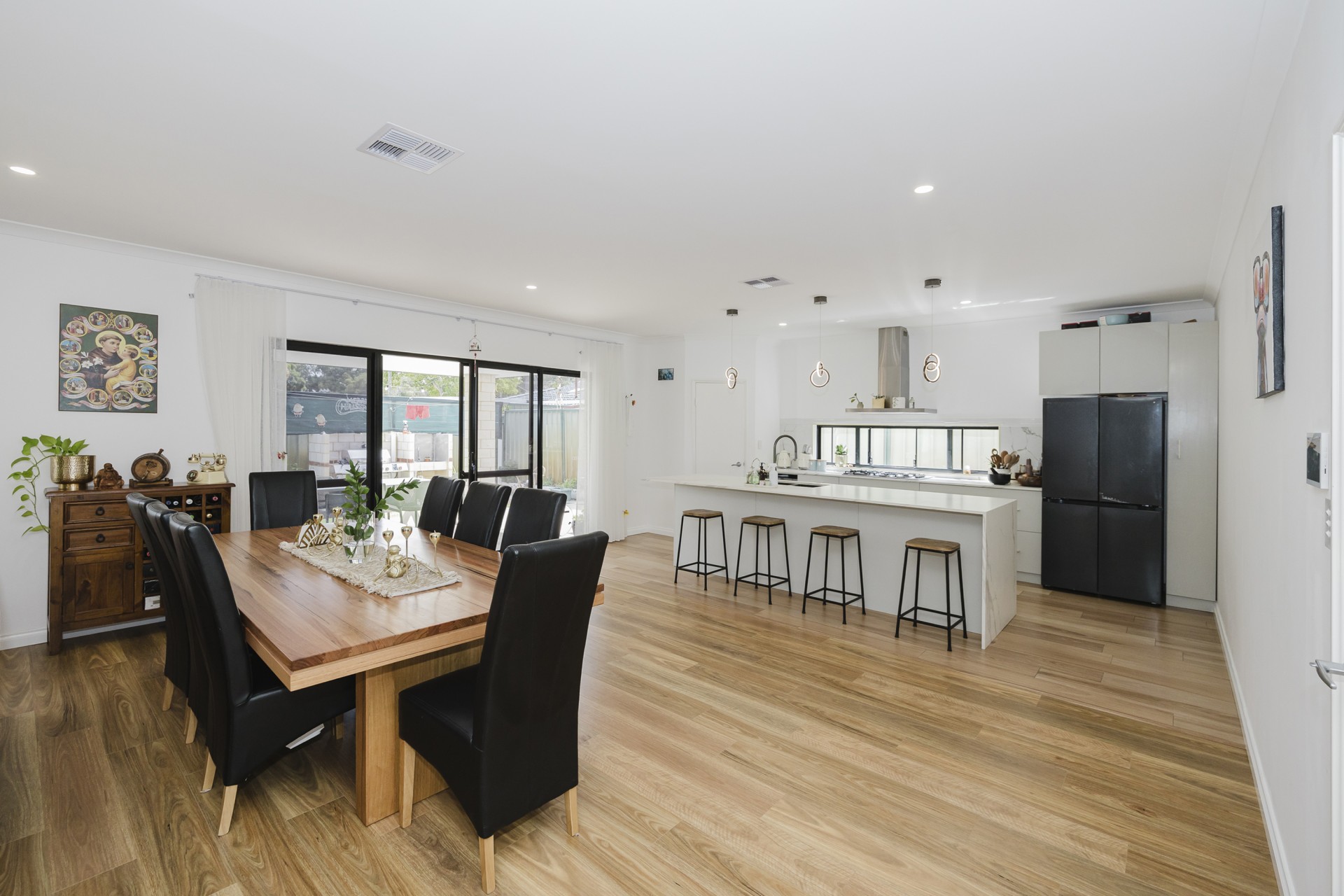The heart of the home lies in the open-plan living and dining area, where family and friends can gather for meals and create lasting memories. The modern kitchen is a chef's delight, equipped with sleek appliances, ample storage, and a breakfast bar for casual dining.