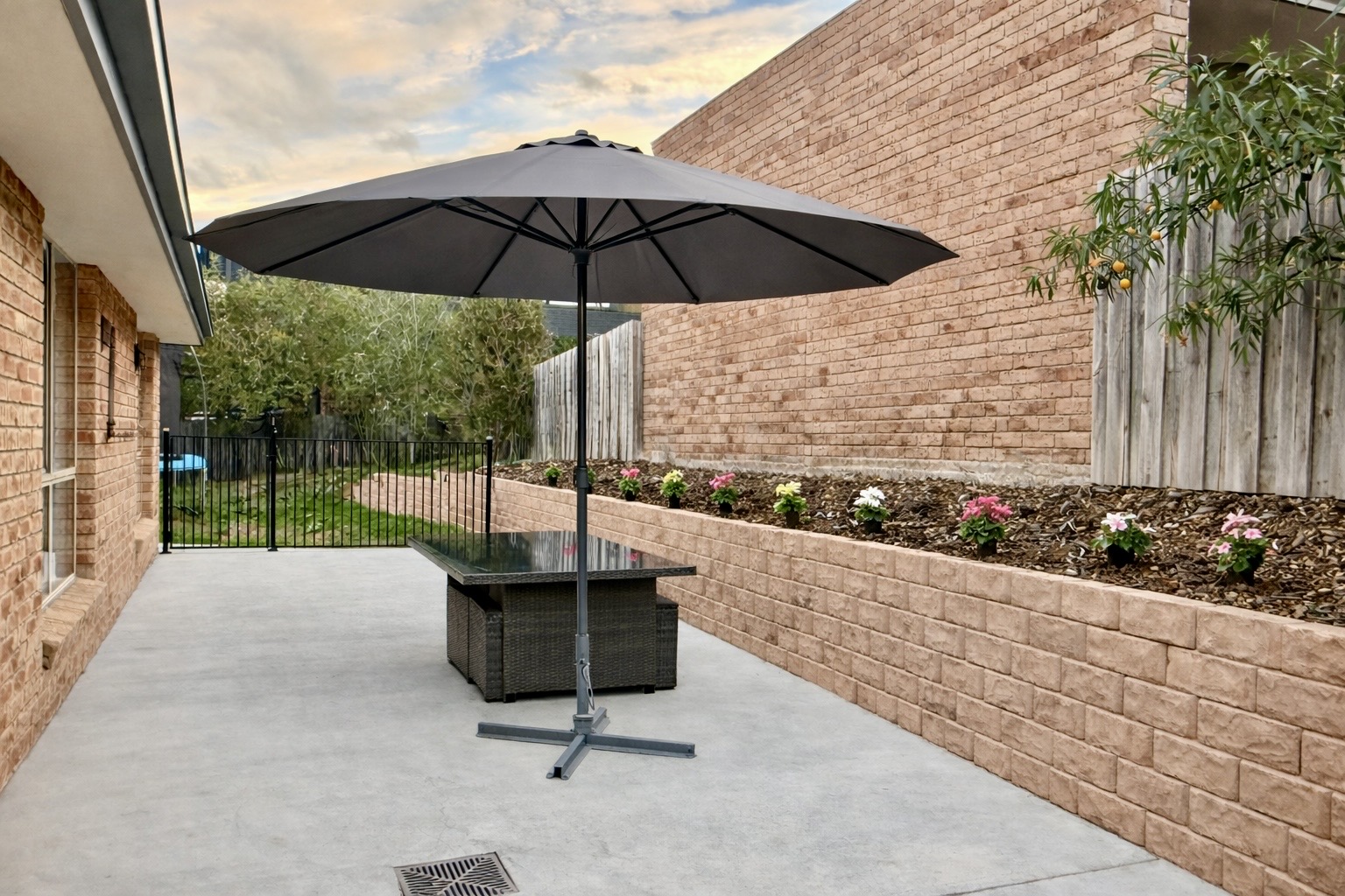 Outside, a large fenced outdoor entertaining area beckons, providing a safe haven for children to play freely while you unwind and soak up the sunshine.