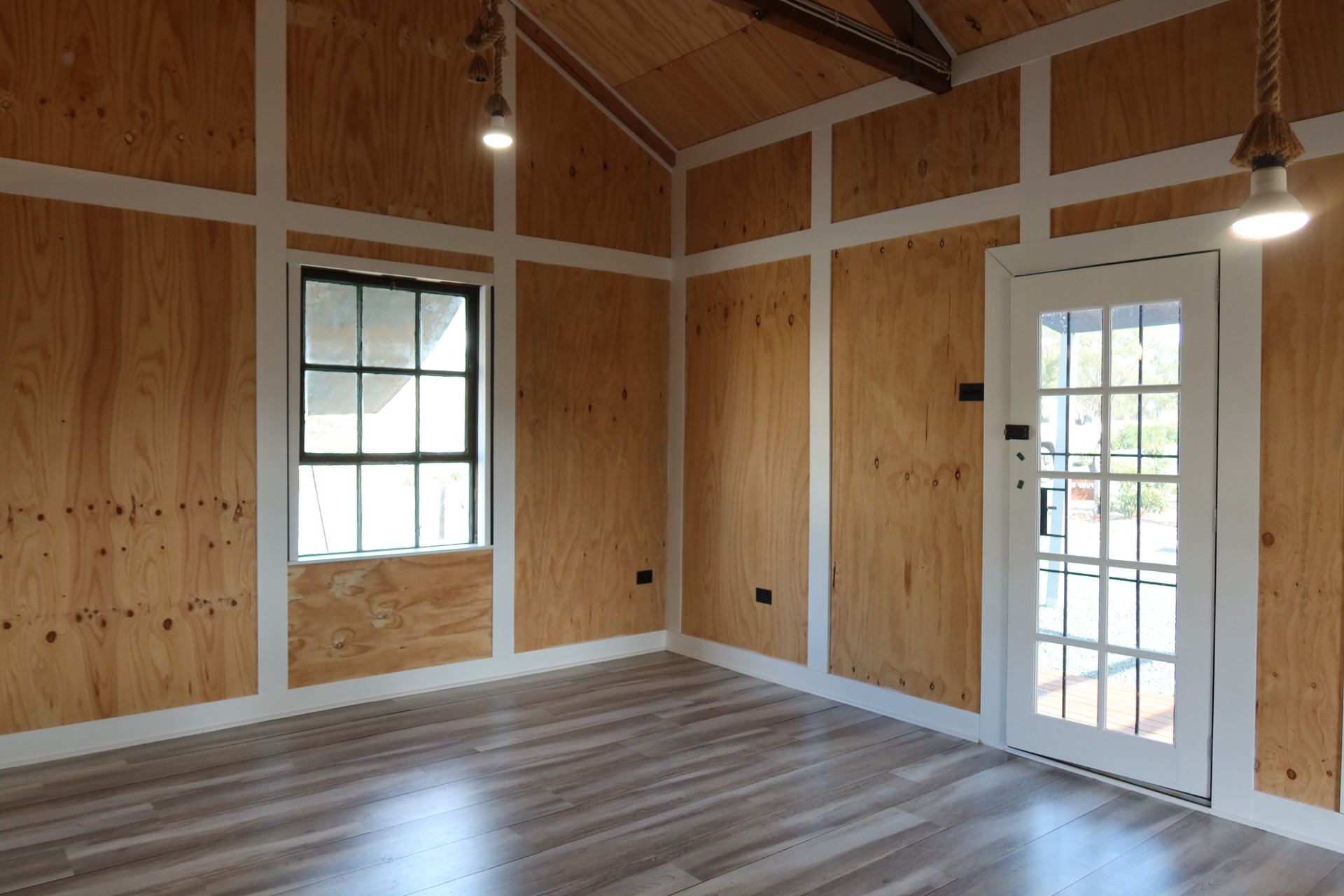 The existing structure is fully insulated and features a split system air conditioner, partitioned wall with potential connections to water from two rain water tanks.