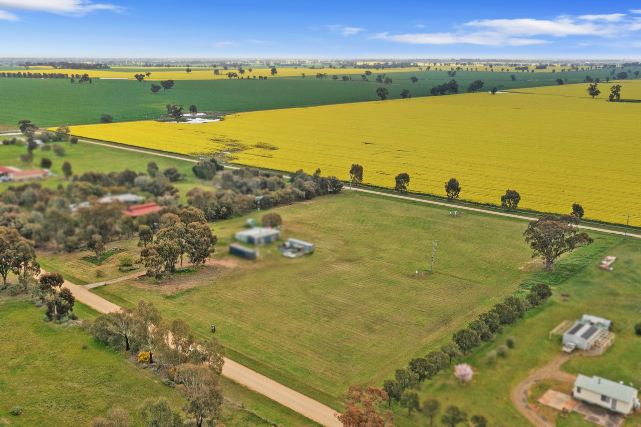 Only 10 minutes to Yarrawonga, Lake Mulwala, Murray River, power connected and ready to go, have the space you've always wanted, farm views with changing crops, peace and quiet, great village, has camp drafting, tennis courts and car race track close by.