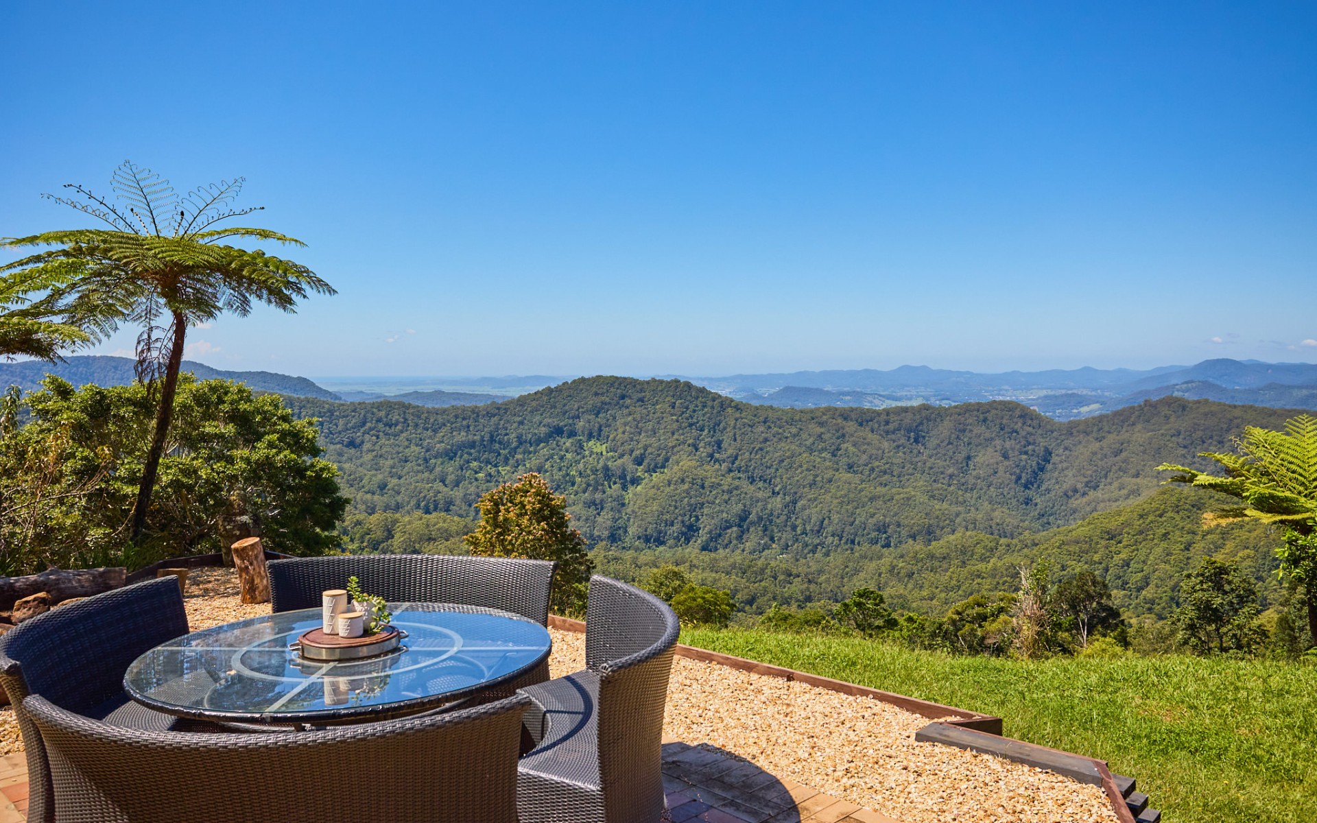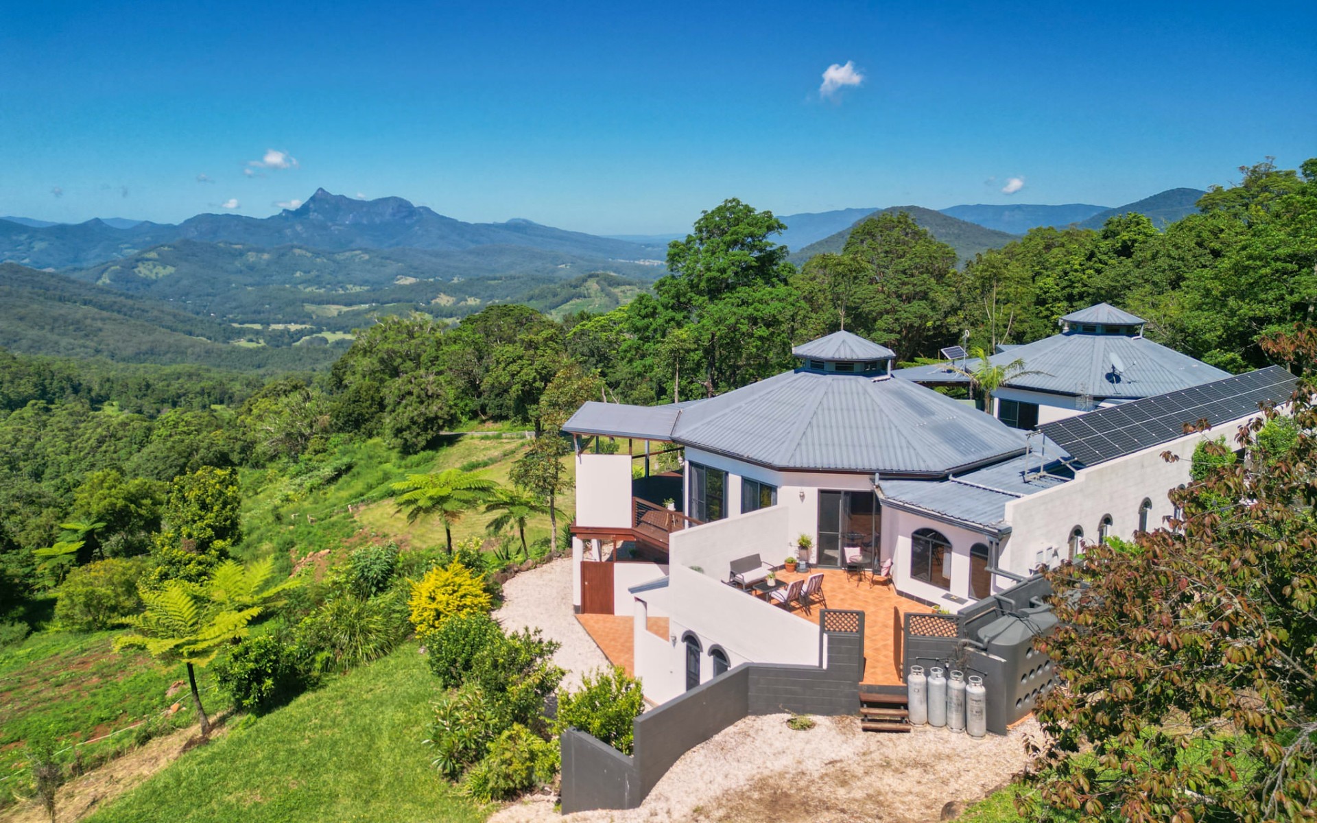 Perched atop a private mountain in the Northern Rivers of New South Wales, this fully off-grid premier estate represents a rare convergence of scale, elevation, beauty, versatility and income potential. A property that far surpasses typical lifestyle holdings. Its irreplaceable setting is both cinematically breathtaking and intimately private, with panoramic views sweeping across Wollumbin (Mount Warning), Springbrook escarpment, the Cougals and out to the ocean at Kingscliff. Elevated above flood risk and surrounded by pristine rainforest, the property offers complete seclusion and safety, while remaining within practical reach of major lifestyle and commercial hubs.
