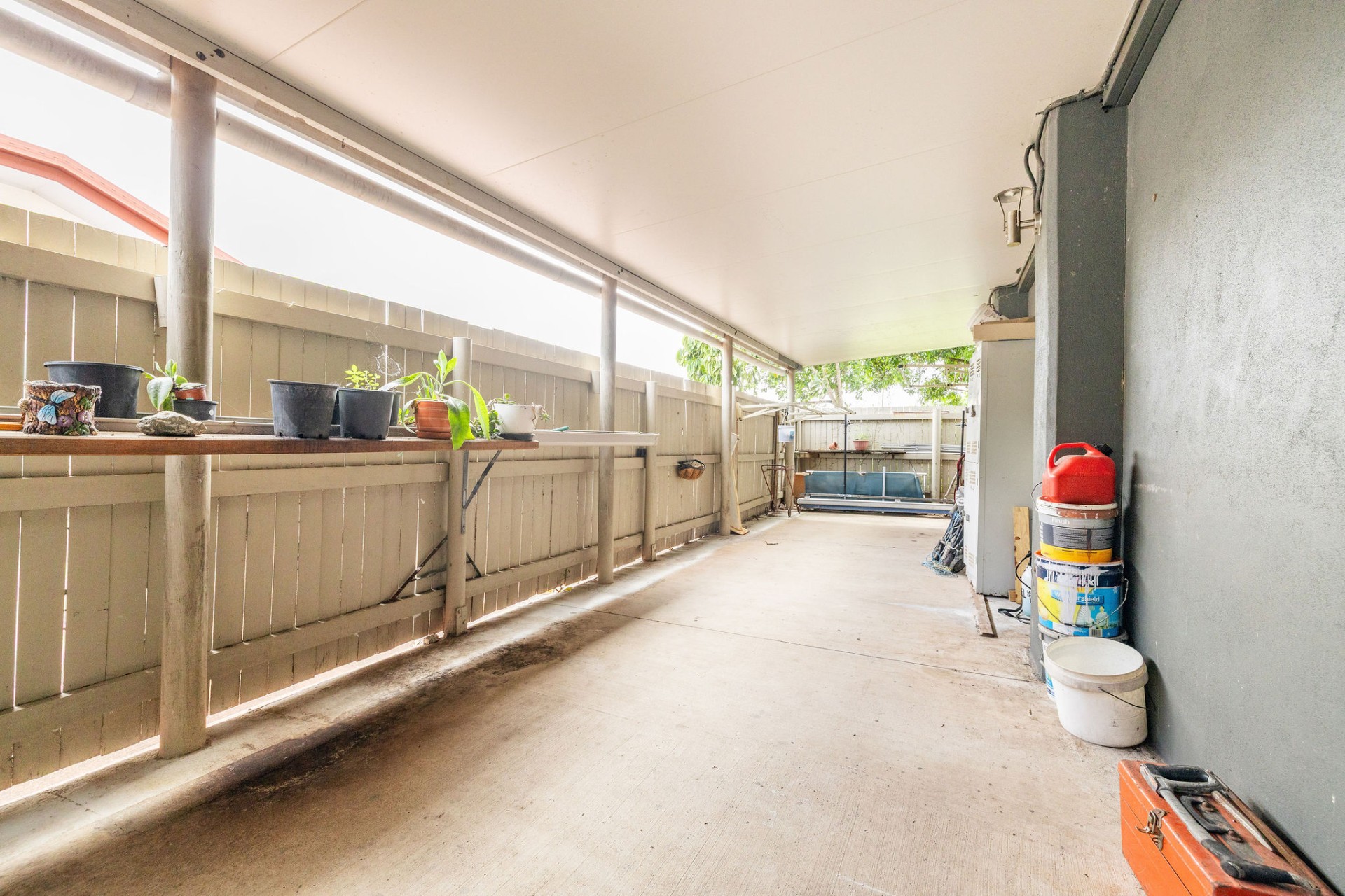 Back downstairs, the staff room leads to a charming verandah area outside, perfect for unwinding or entertaining, featuring a laundry tub and clothesline. The attached residential area boasts two bedrooms, a cosy living space, and a modern bathroom and kitchen, presenting an opportunity for comfortable living or additional rental income.