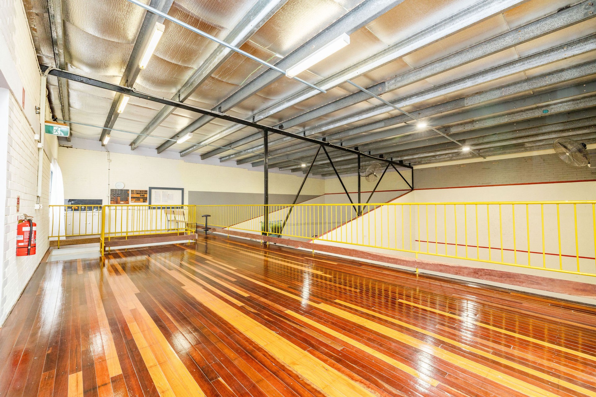 Ascend the stairs to find a picturesque viewing platform crafted from exquisite Mackay Cedar, overlooking the courts and gym, complete with a grandstand for a spectator experience like no other. This versatile space has hosted classes and functions, offering a unique setting for various activities, complemented by a practical storage area tucked beneath the stairs.