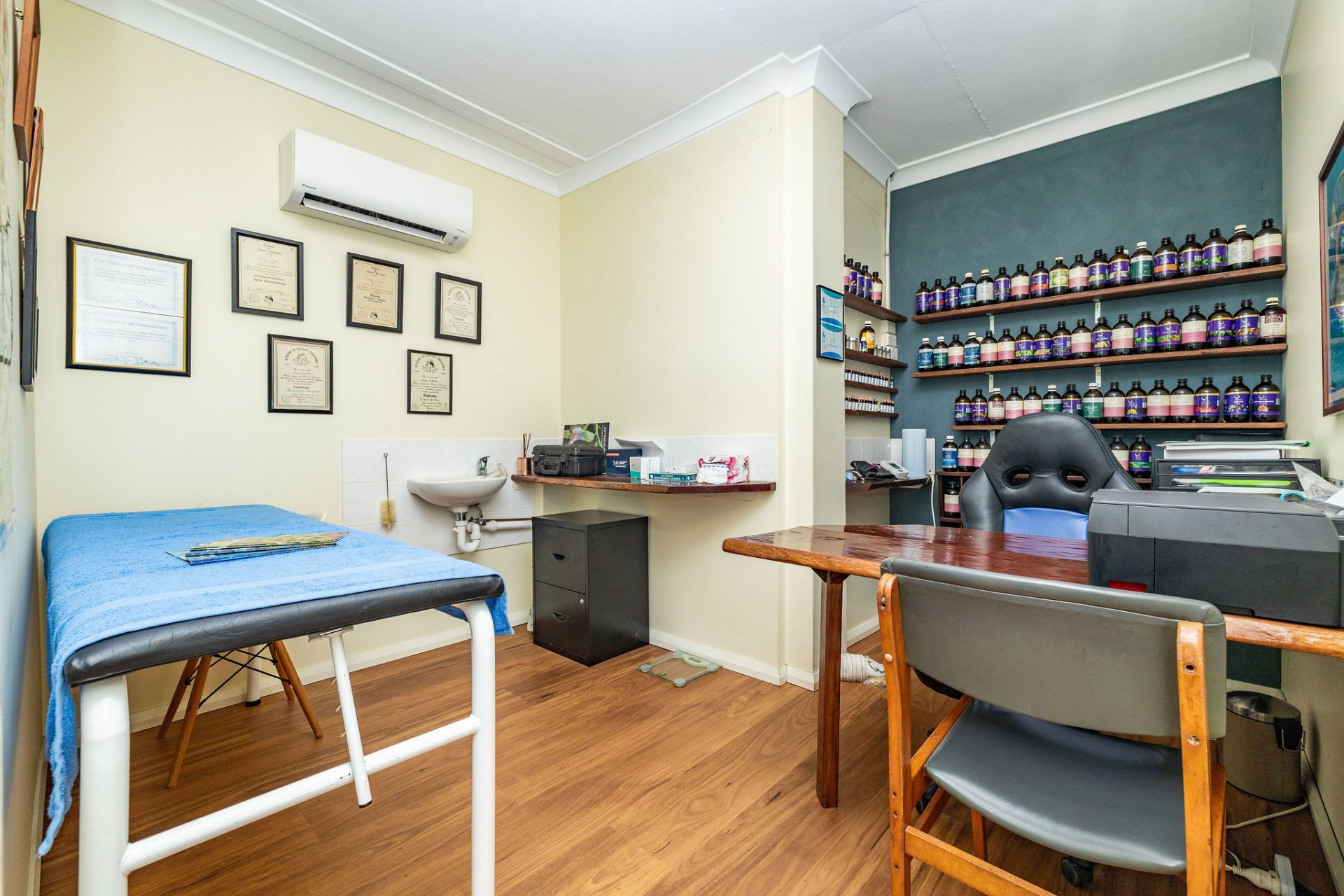 As you step inside, you're greeted by a warm and welcoming atmosphere starting with the lovely waiting room that sets the tone for what lies beyond. The first office, currently used as a massage/bodywork room, exudes tranquillity, while the adjacent counselling room boasts double insulated walls for utmost privacy, ideal for intimate consultations.