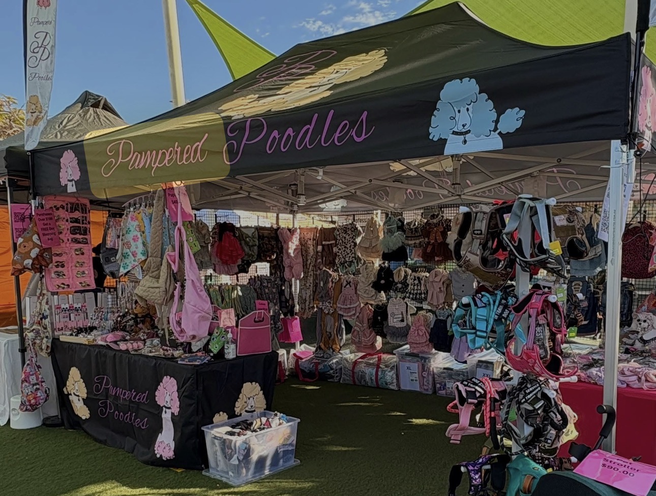 Pampered Poodles has been operating for over a year and has built a strong presence at markets, consistently turning over around $ 1, 500 per market day. The business is well presented, professionally branded, and comes with a large range of quality stock covering both summer and winter lines, making it a ready- made business with immediate earning ability.