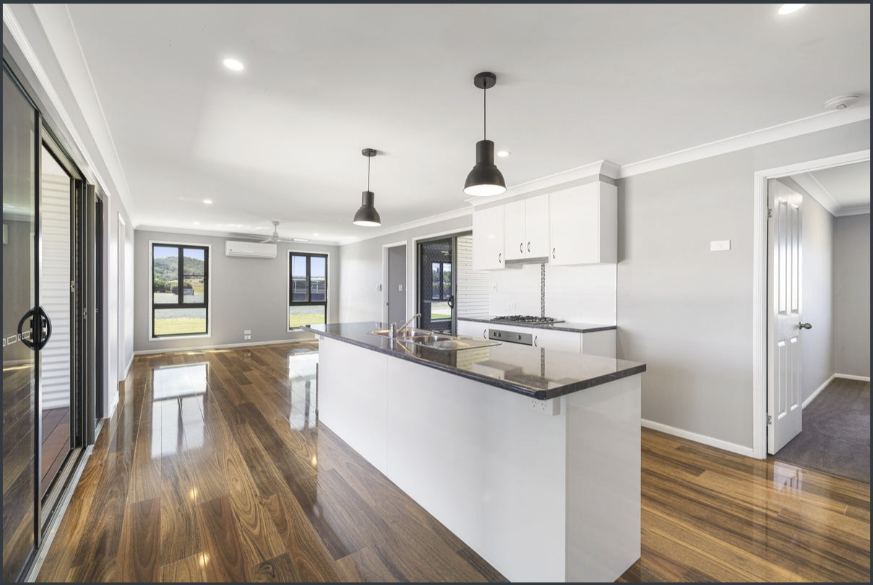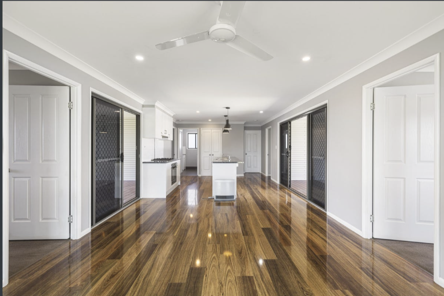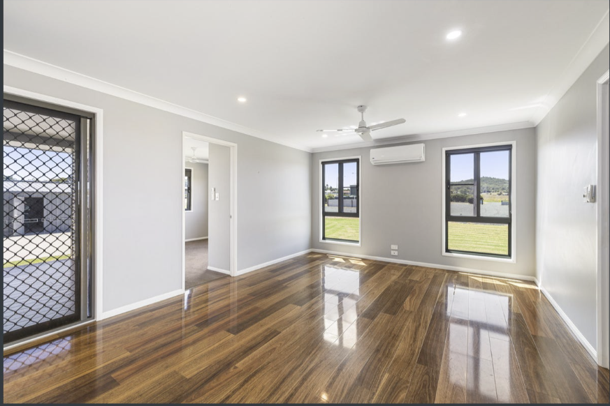 Modern 4-bedroom caretaker's cottage / workers' accommodation featuring air-conditioned living areas, two air-conditioned bedrooms, ceiling fans throughout all bedrooms and living spaces, gas cooktop, gas heater, and generous front and rear decks.