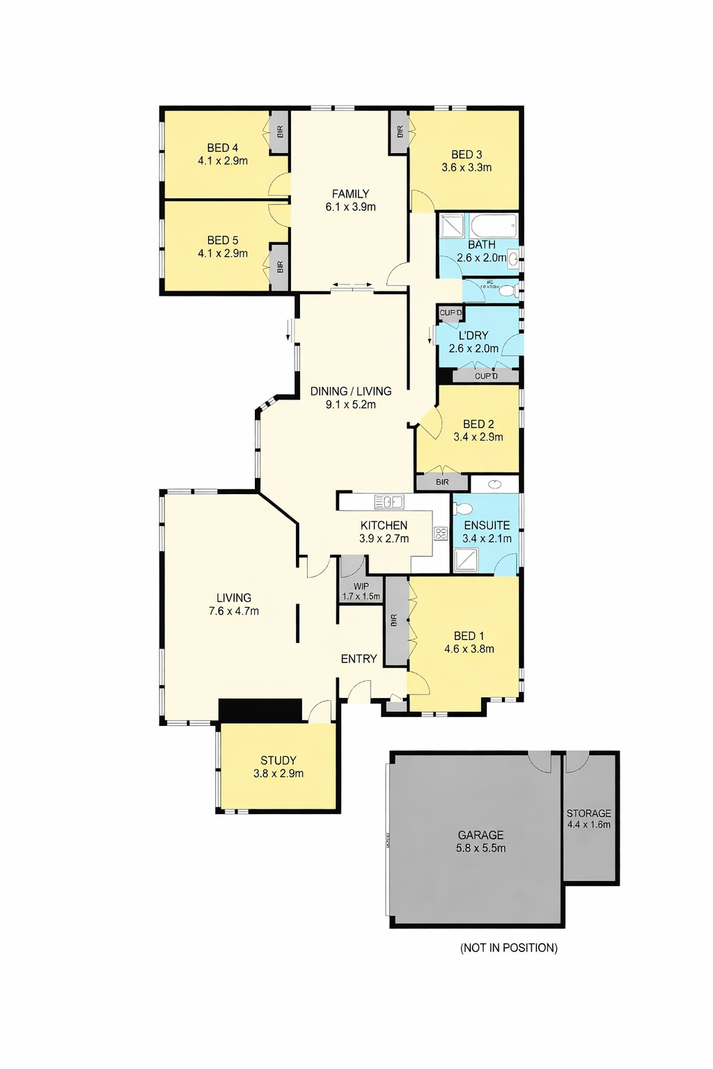 • 5 spacious bedrooms plus study/optional 6th bedroom