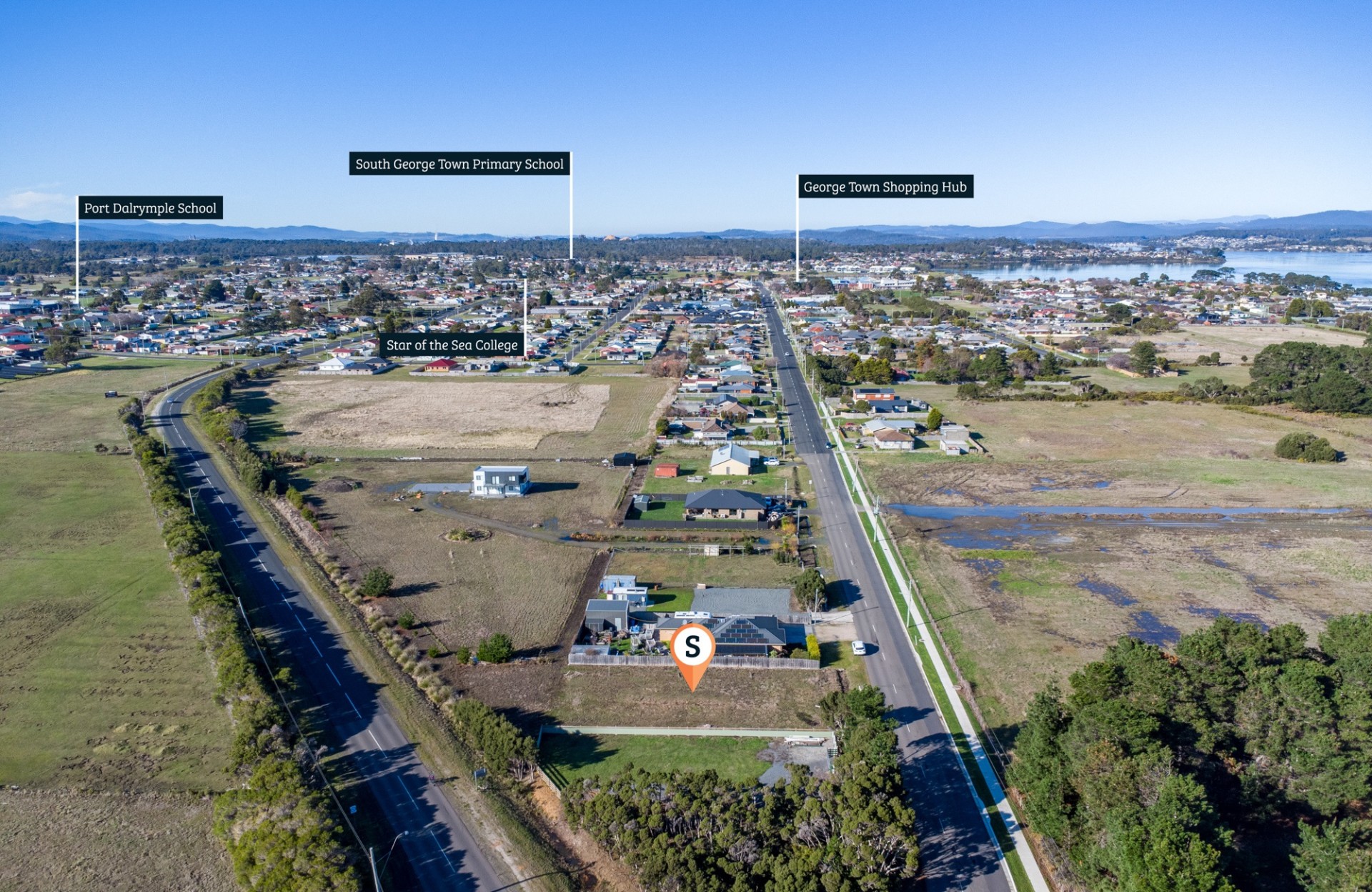 George Town has a lot to offer with 3 schools (two public & one private), a modern hospital, 2 supermarkets as well as hardware supplies and other shopping conveniences. There are also a number of sporting facilities, a swimming centre, social clubs, and the internationally designed mountain bike trails are nearby. All this, only minutes from the beach, a 35-minute drive to Launceston, and less than one hour to the Launceston Airport.