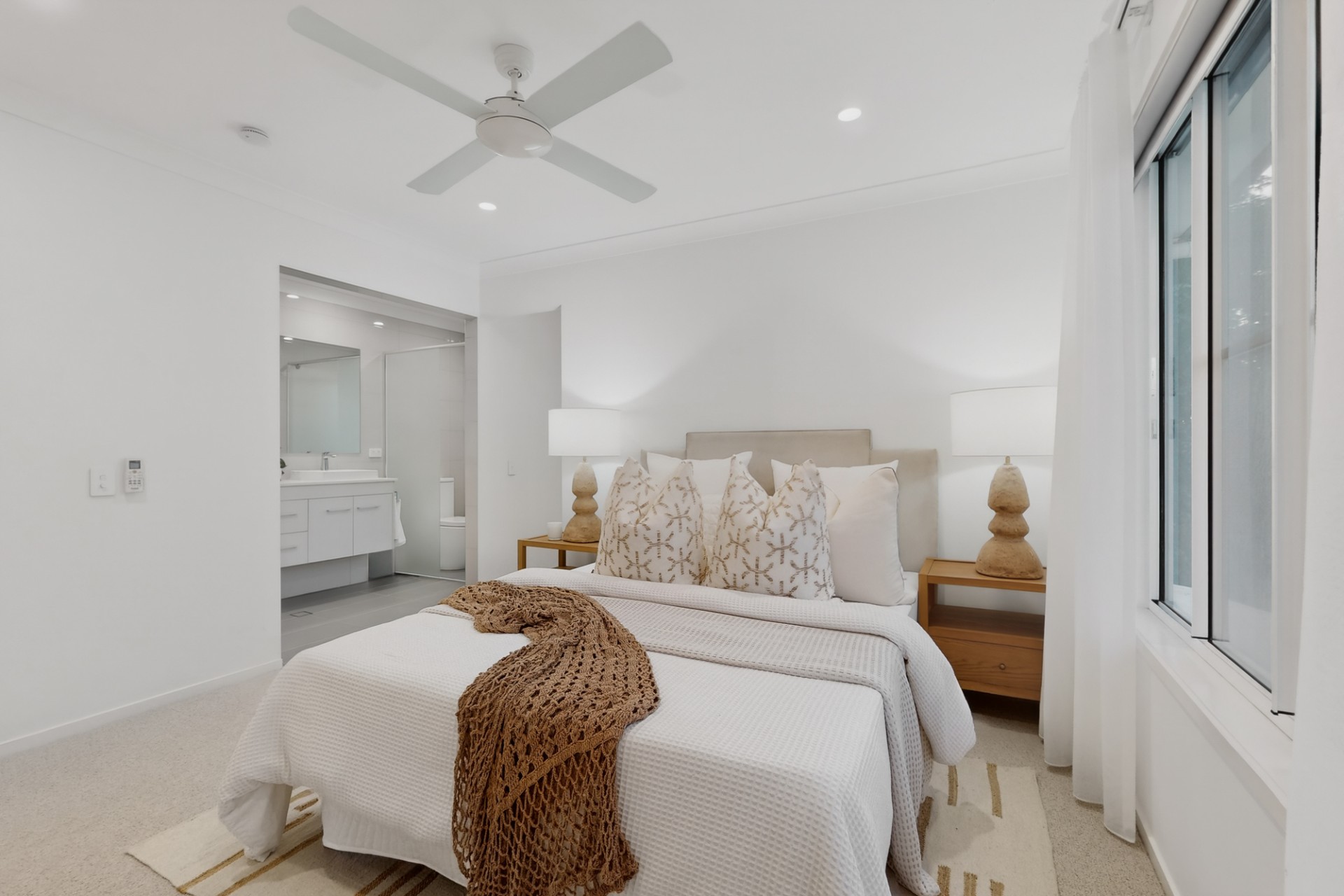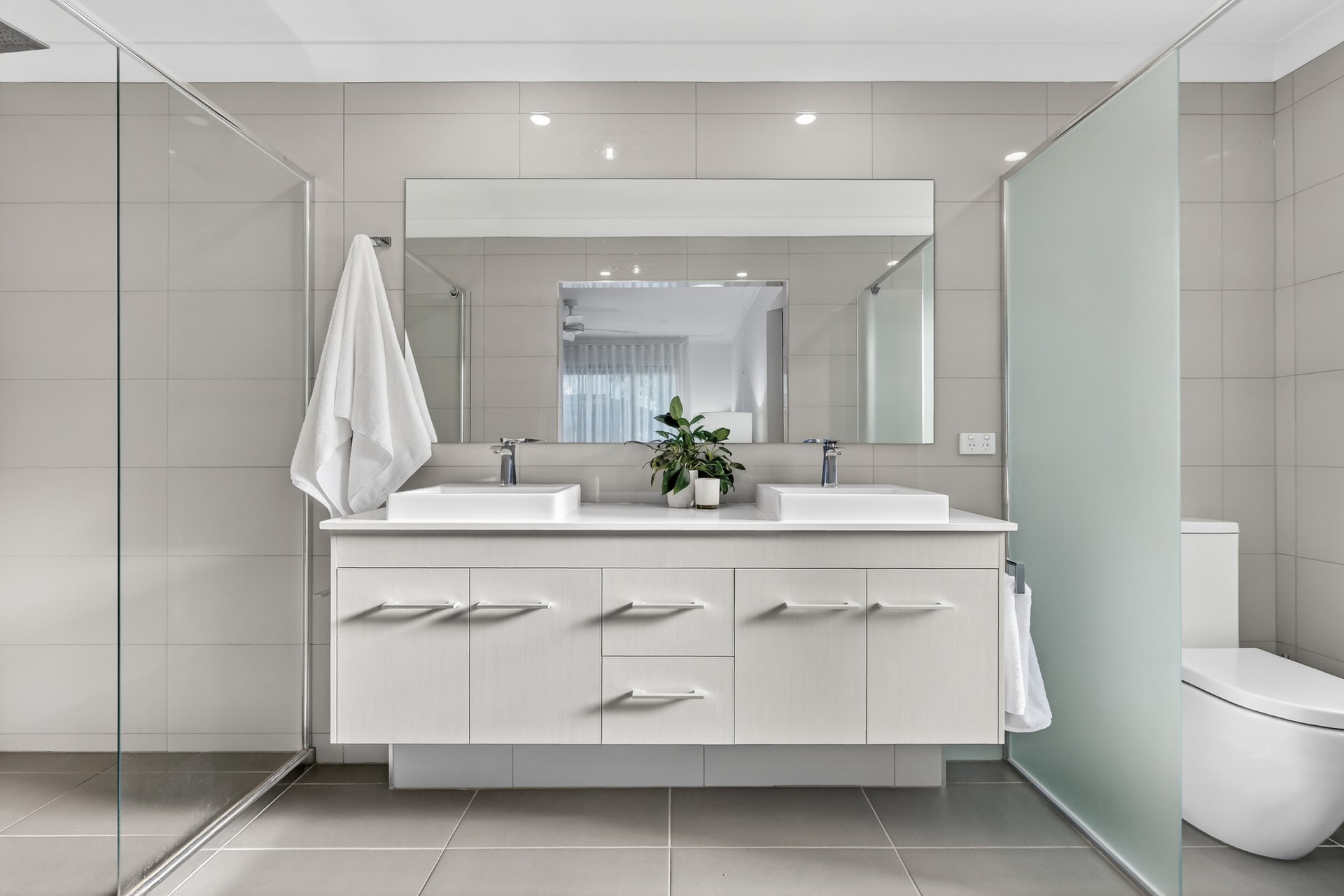 Alongside a seperate powder room, each of the three generously sized bedrooms includes its own private ensuite, providing comfort and convenience for families or guests. Two bedrooms feature walk-in robes and the luxurious master suite is enhanced by a spa-inspired bathroom complete with dual basin, ample cupboard space and a dual rain-head shower for a true retreat experience.