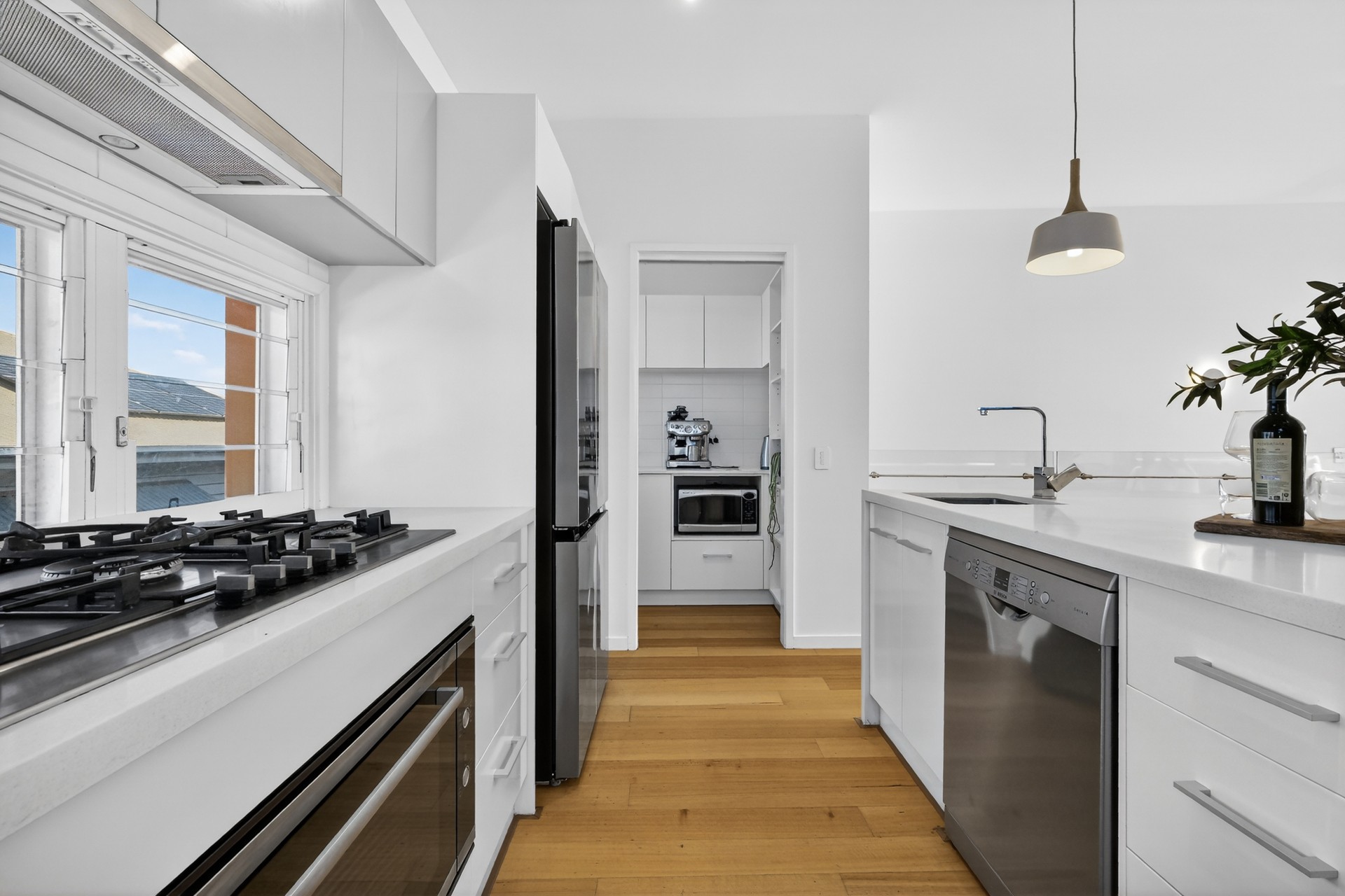 At the heart of the home, the designer kitchen features premium appliances, sleek cabinetry, generous bench space and a highly practical butler's pantry, delivering both functionality and refined style for those who love to cook and entertain.