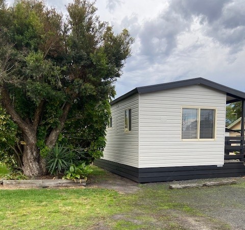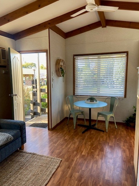 Features a vaulted ceiling in the entry, lounge and kitchen, this cabin is currently set up as 1 bedroom with a separate study which could easily be used as another bedroom if required. Kitchen is complete with Fridge/Freezer, microwave and gas cooker. Other features include air-conditioning, ceiling fans, and built-in robes.