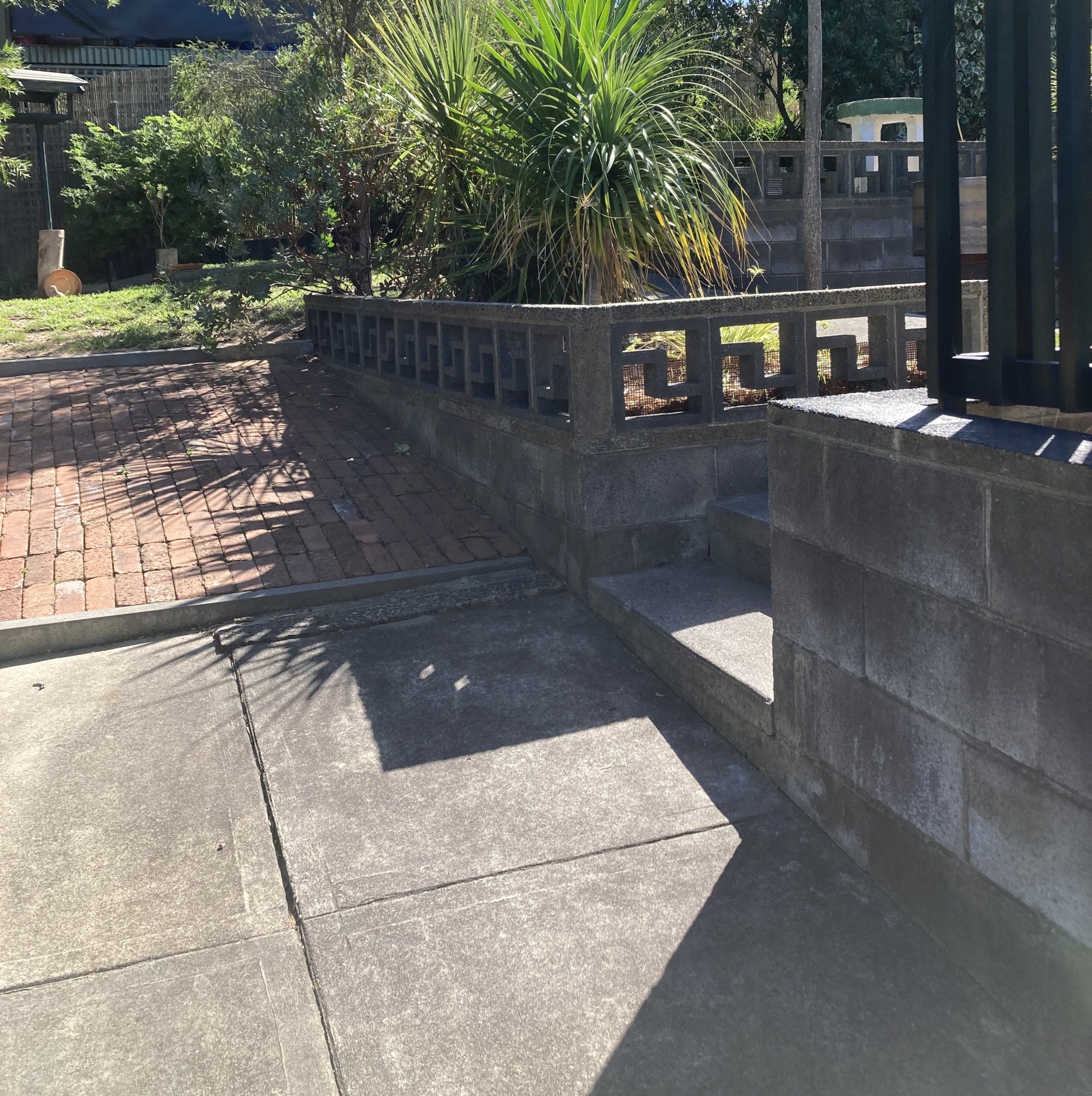 Established and beautifully maintained gardens with well-constructed retaining walls and pathways.