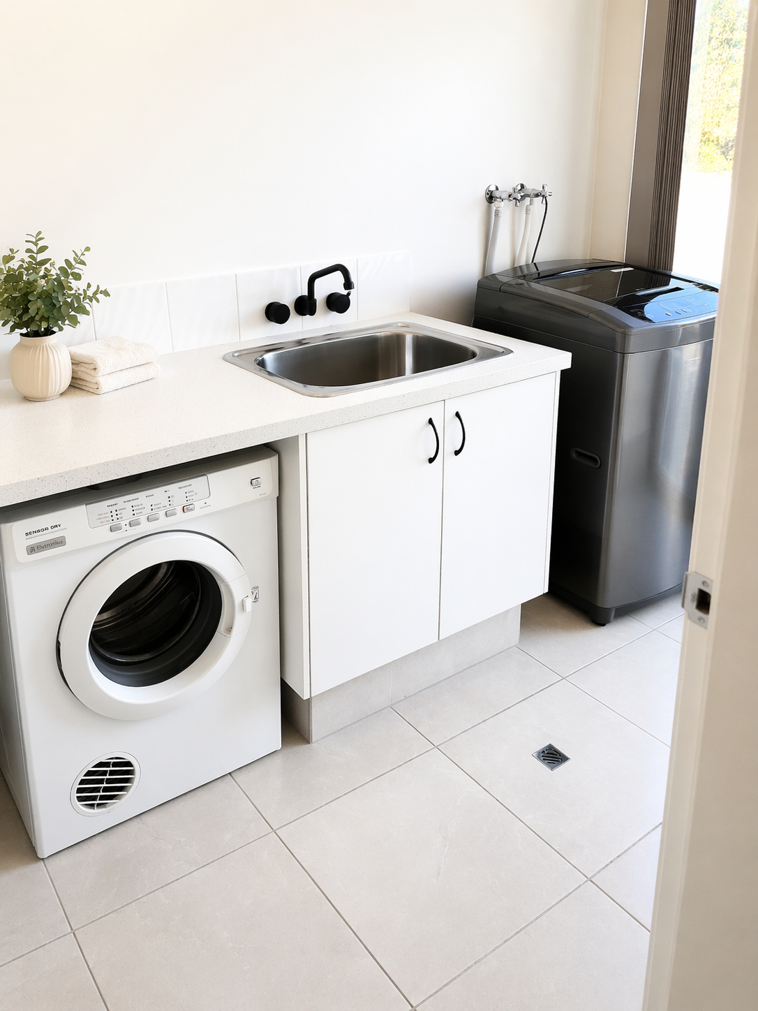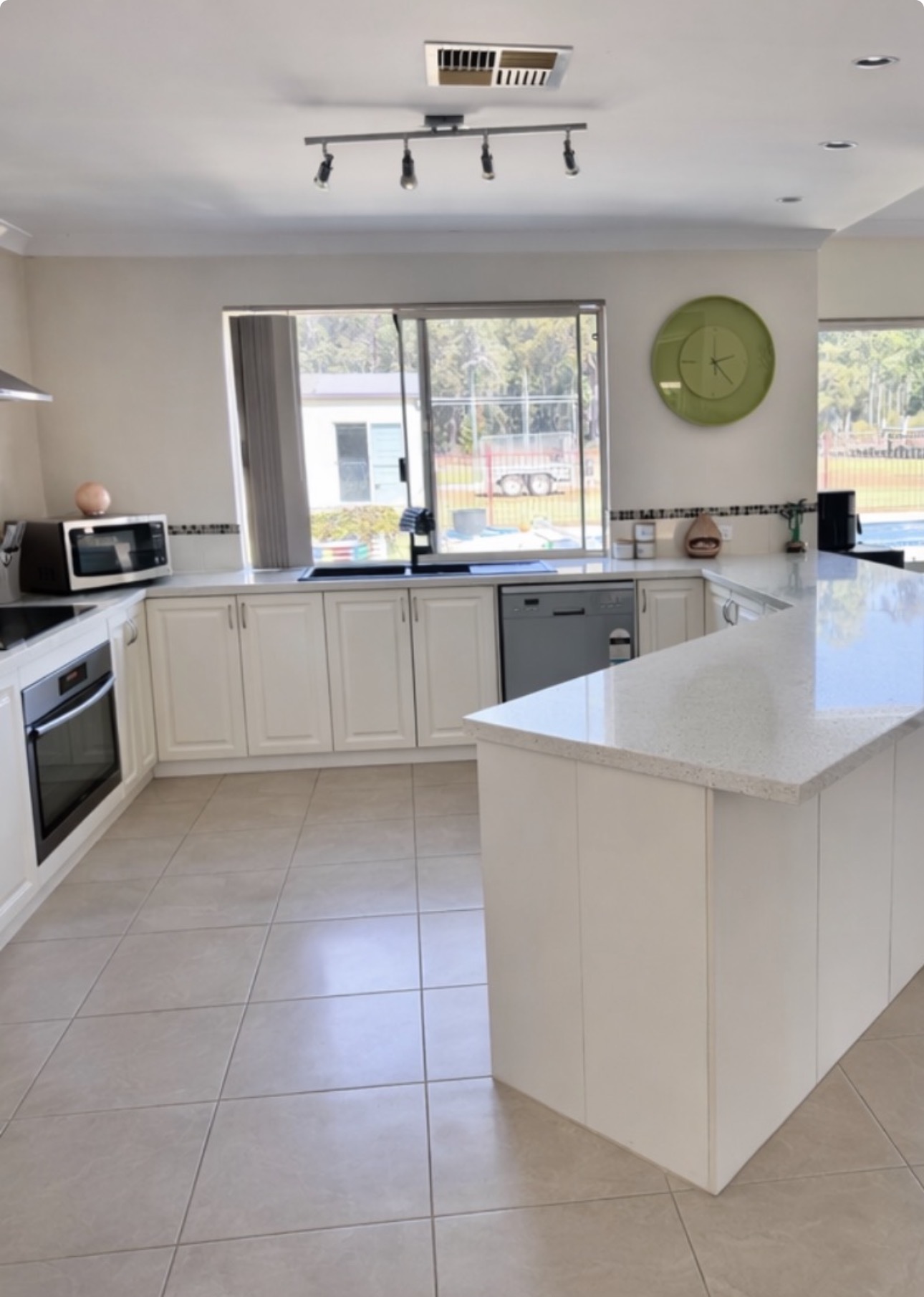 At the heart of the home, a light-filled open-plan living and dining area creates a seamless connection between indoor living and everyday comfort. The adjoining kitchen is both elegant and practical, featuring stone benchtops, quality appliances and generous workspace-perfectly positioned to overlook the main living area and outdoor entertaining space.
