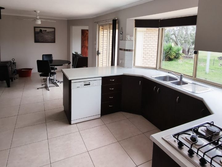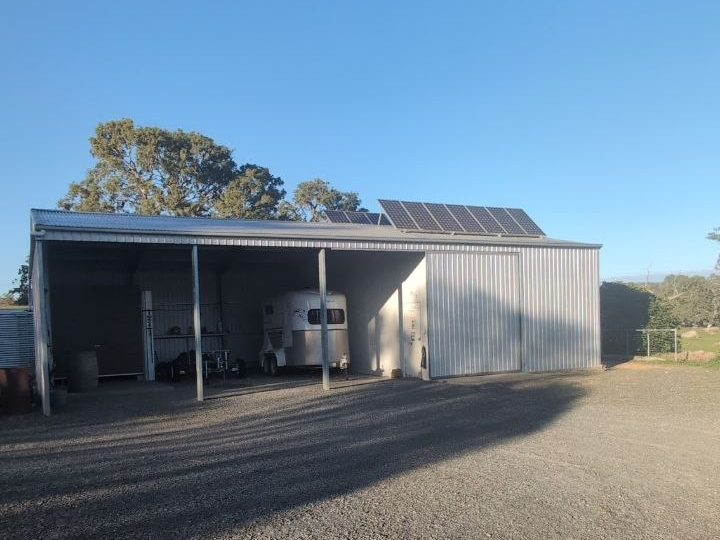 A comfortable 4-bedroom, 2-bathroom brick veneer home is fully off-grid, powered by a 2.5kW solar system with 14 panels and 24 batteries. Solar hot water and a wood heater which can also heat water during cooler, cloudy days provide practical year-round living. Recently installed roller shutters on all major windows keep the home cool in summer.