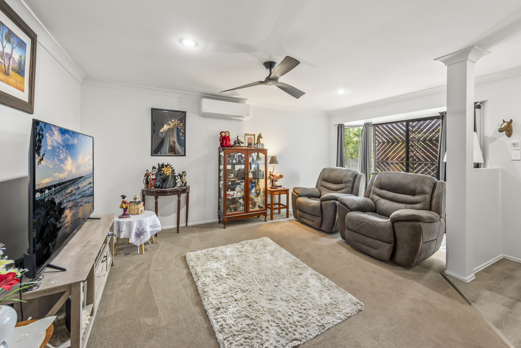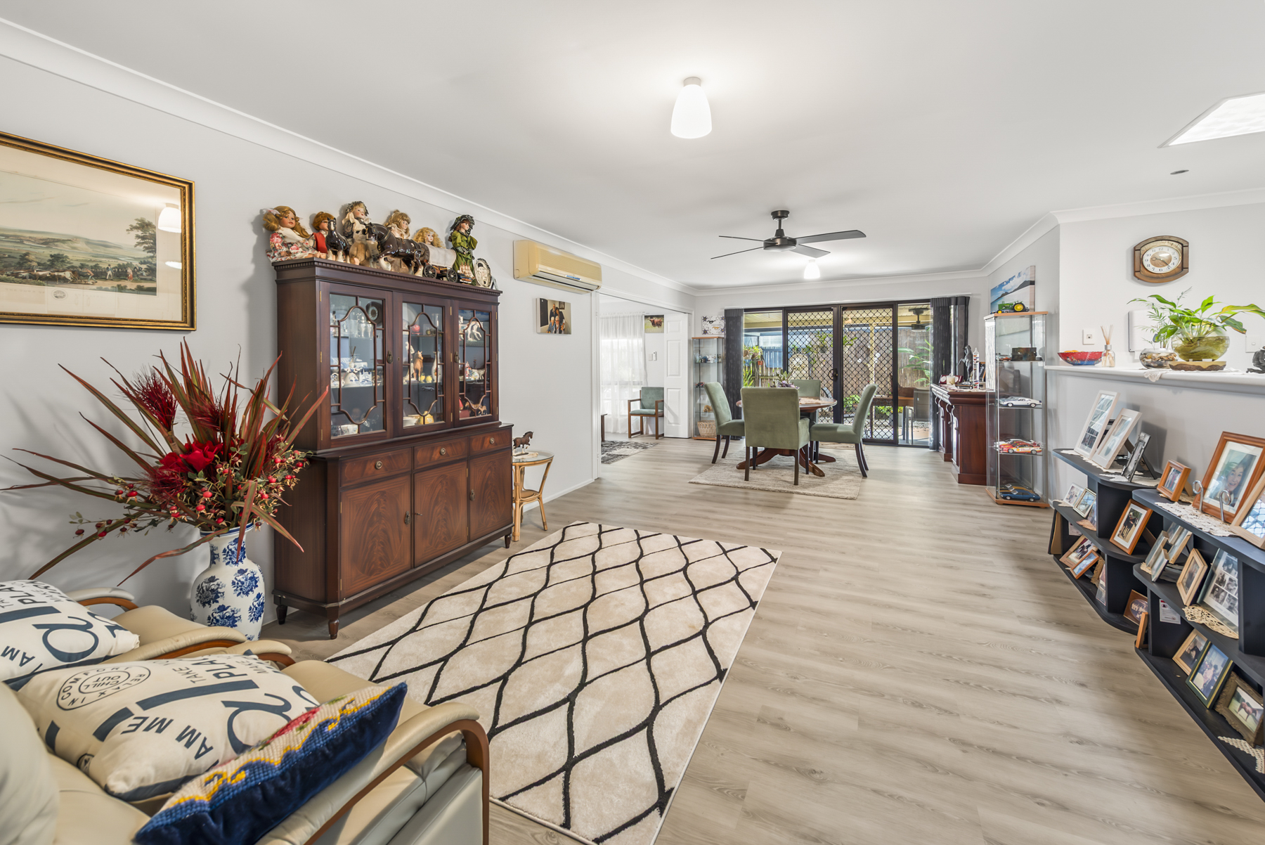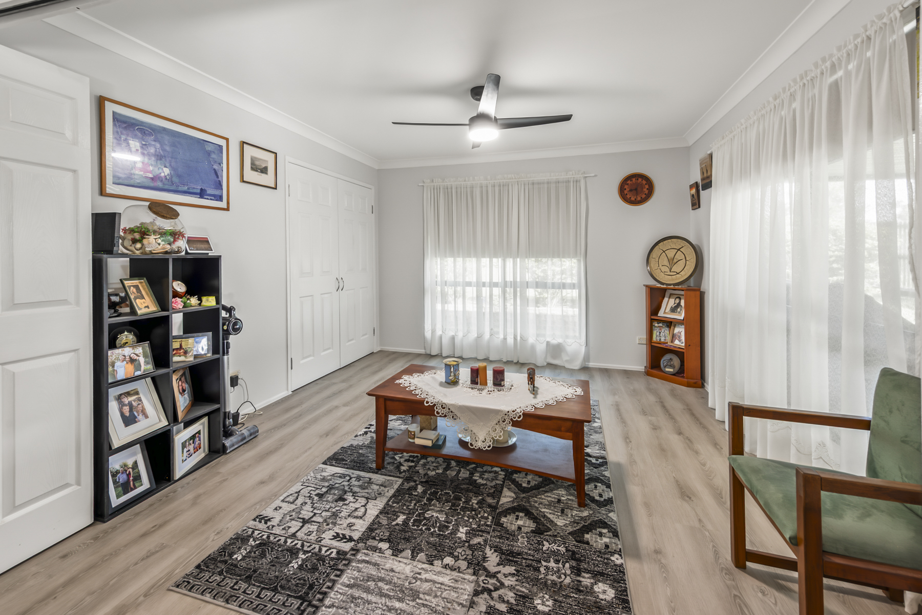 Step inside to discover a haven of tranquillity, where the main bedroom, equipped with an ensuite and a walk-in robe, exudes luxury. With 2 living areas and 3 air conditioners throughout, comfort is assured all year round. The thoughtfully designed layout includes ceiling fans in every room for added convenience.