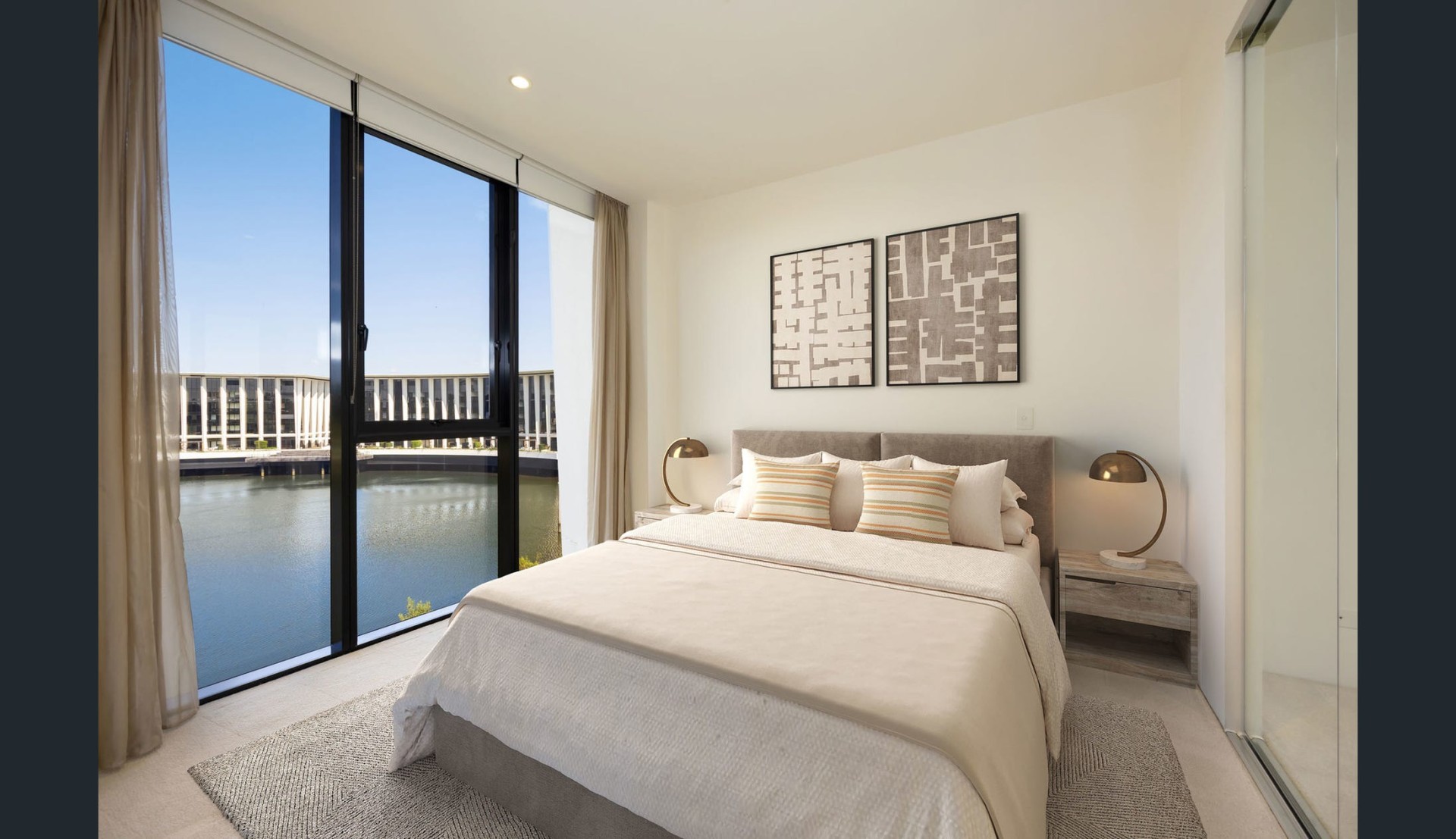 The designer kitchen impresses with stone benchtops, a built-in fridge, stainless steel appliances, and an entertainer's breakfast bar with generous storage. The master suite offers a private retreat with a walk-in wardrobe and elegant ensuite, while two additional bedrooms also boast stunning water views.