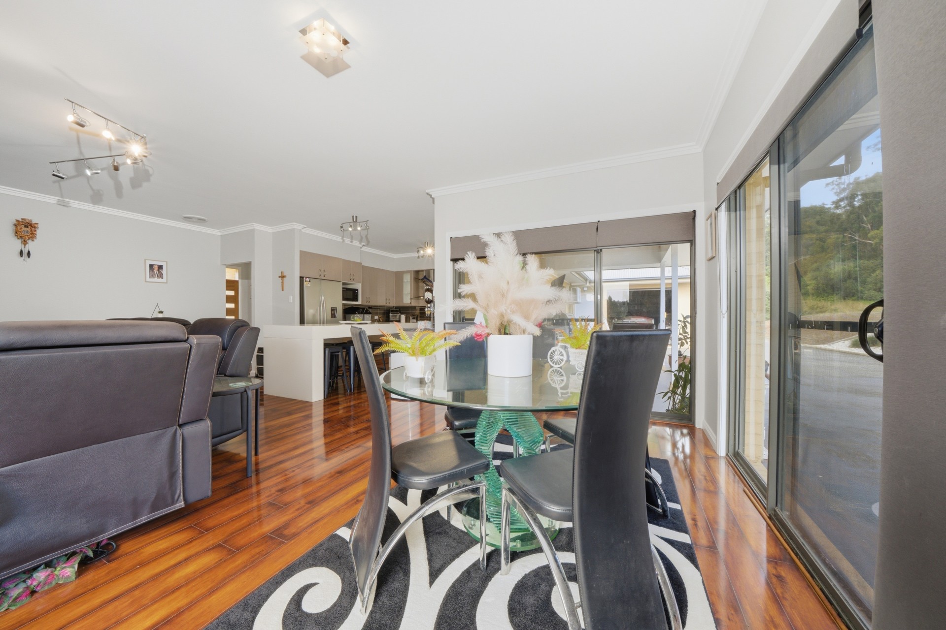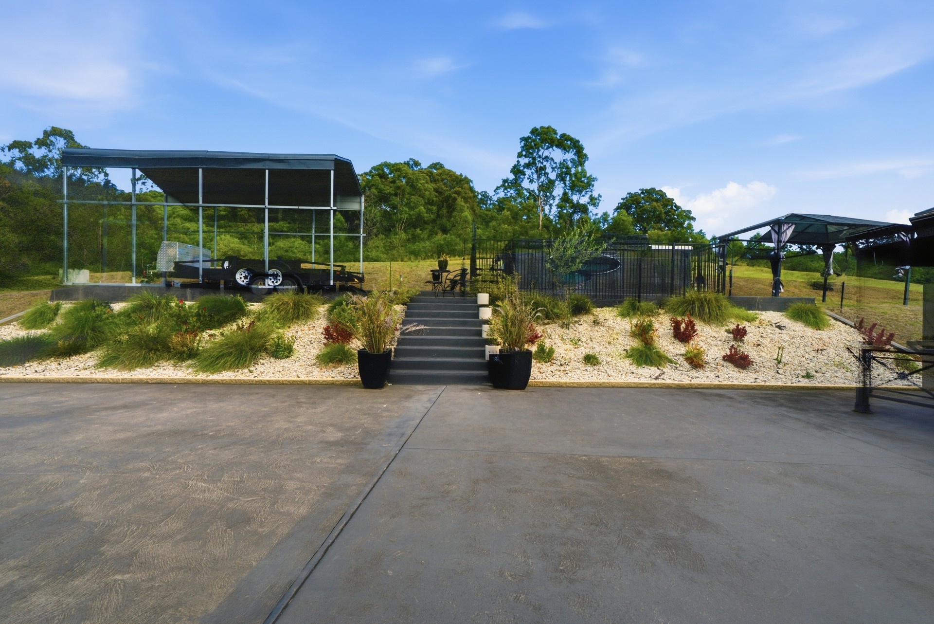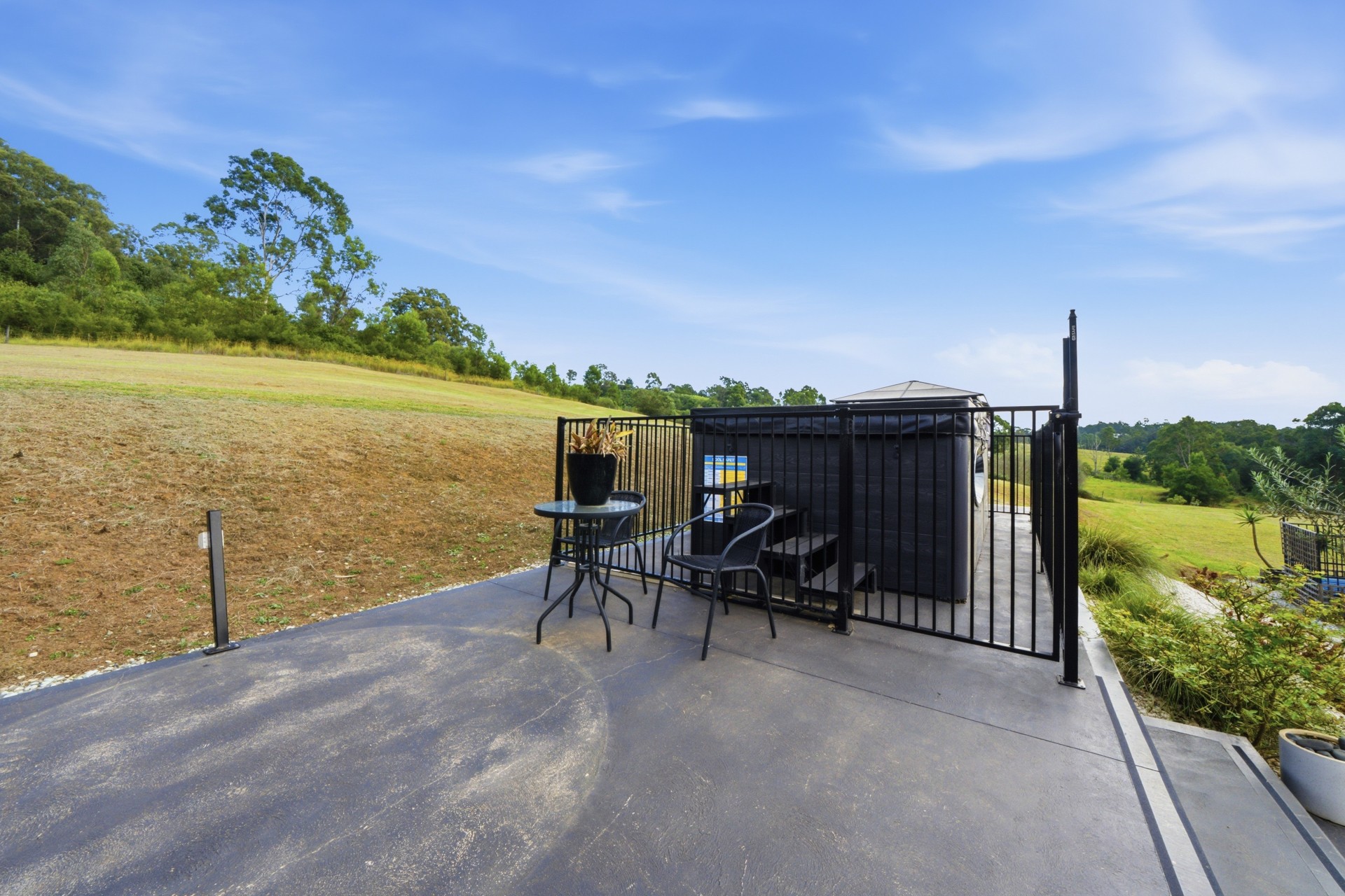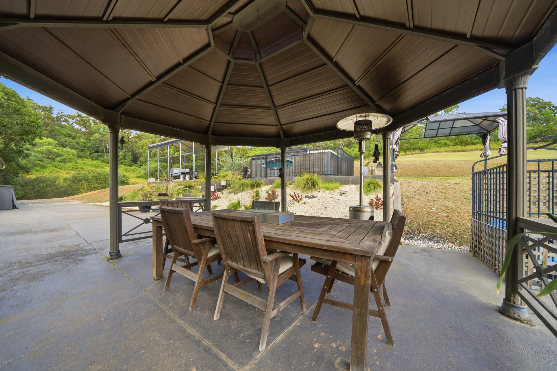 Large outdoor entertainment area with BBQ fully fenced swim spa and undercover alfresco area.