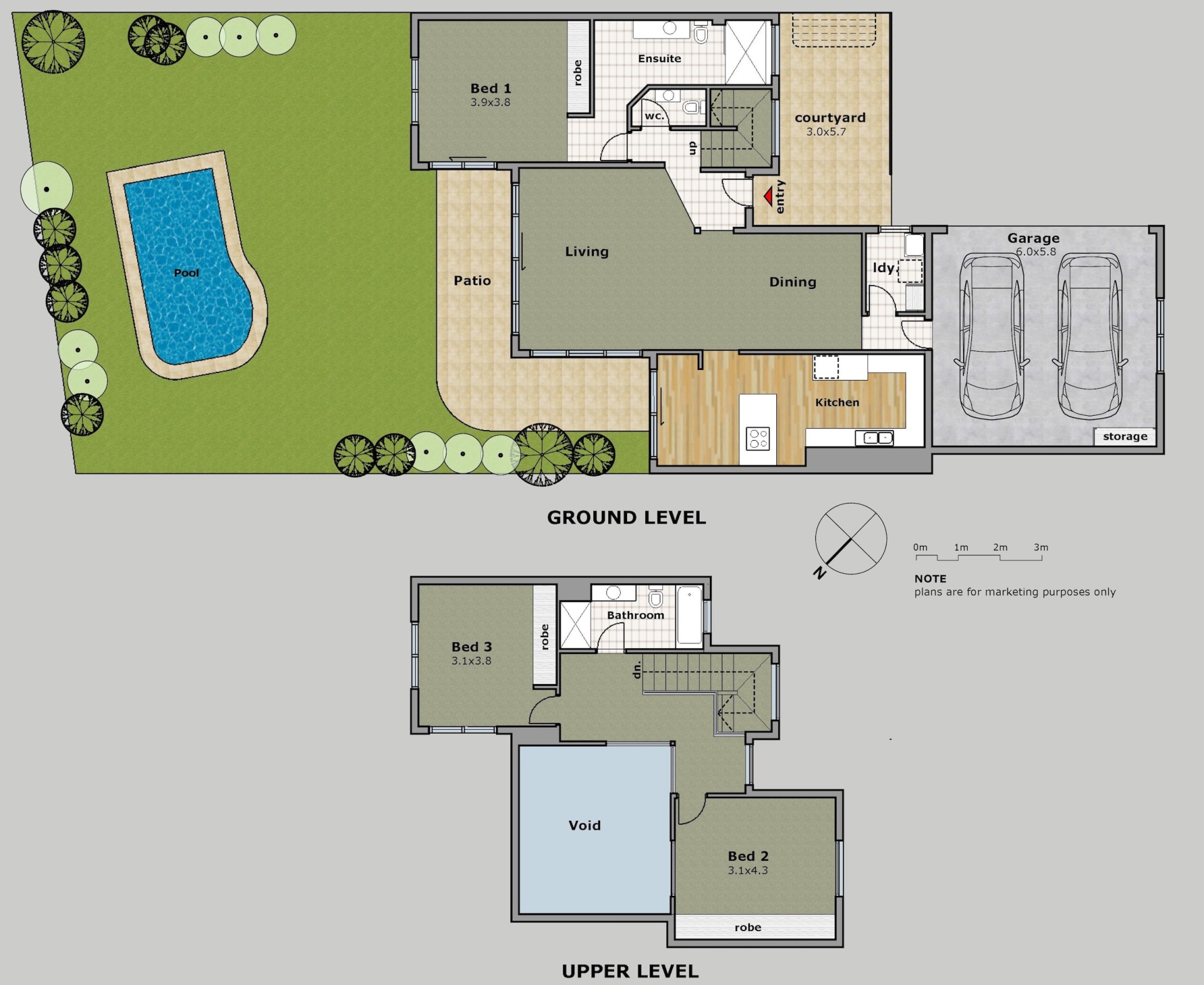 Featuring three spacious bedrooms and two and a half bathrooms, this two-storey home has been thoughtfully designed to maximise comfort, light, and flow. Open-plan living and dining areas seamlessly connect to outdoor spaces, creating the perfect environment for entertaining or simply unwinding.