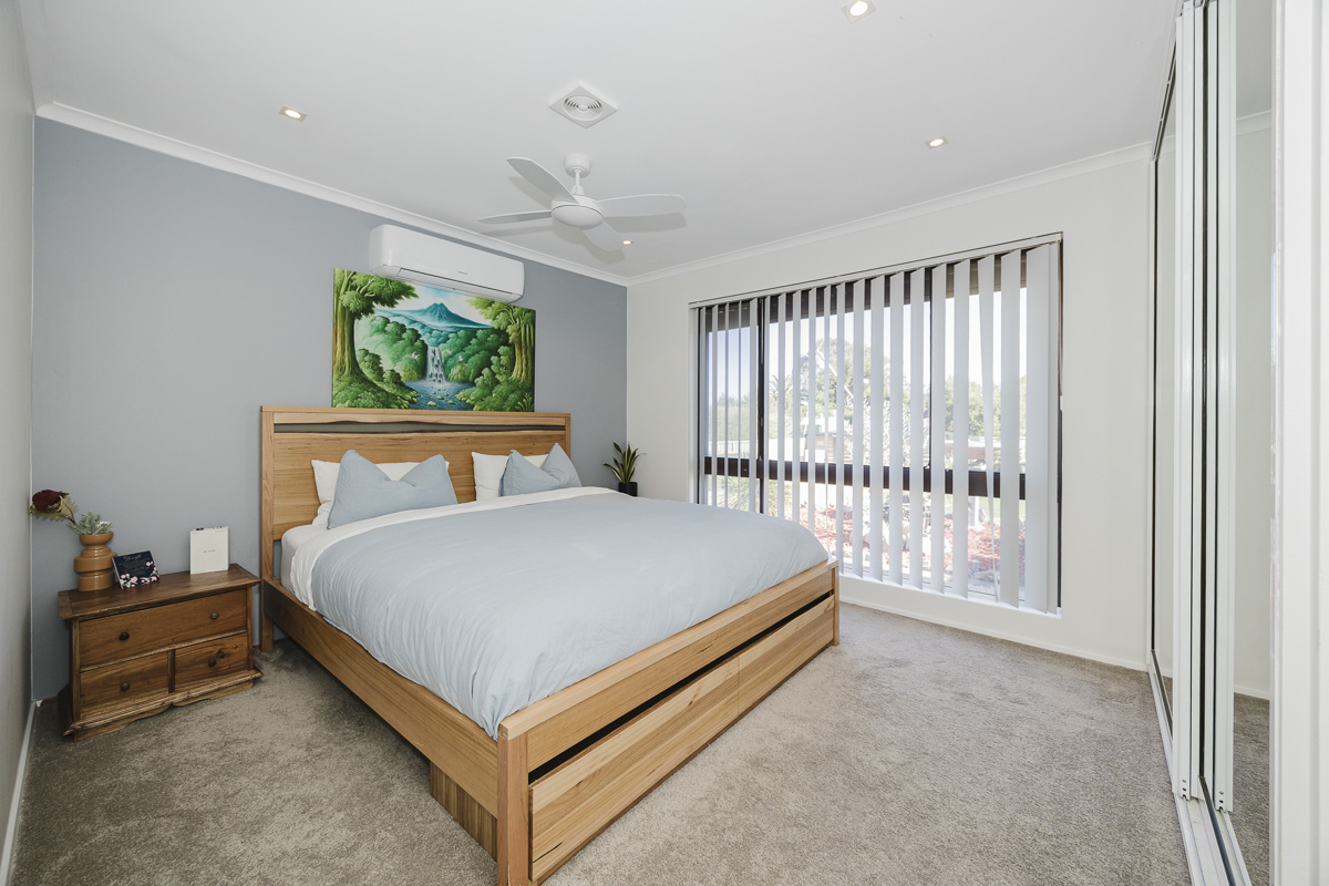 This beautifully updated three-bedroom home perfectly balances modern style with a layout designed for those who value both function and tranquility. Tucked away on a quiet street off the main road, the property offers a peaceful atmosphere supported by friendly neighbors and a safe, private environment. The interior features a freshly renovated laundry, bathroom, and separate toilet, ensuring the most important areas of the home feel crisp and contemporary. Comfort is maintained through every season with a 5kW air conditioner in the main living space, a dedicated 2.5kW unit in the master bedroom, and a ducted evaporative system throughout, while a classic fireplace provides a cozy focal point for the winter months.