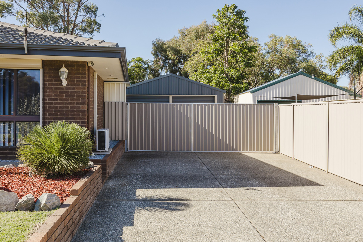 Outside, the property transforms into a functional paradise. The standout feature is a near-new, fully insulated shed equipped with its own massive 7kW air conditioning unit, offering a premium climate-controlled environment for projects, a home gym, or a workshop. For those with adventure in mind, the property provides secure, private parking specifically designed to accommodate a boat or caravan behind sturdy fencing. The backyard is an entertainer's dream, centered around a refreshing pool and an expansive patio area ideal for large gatherings. The grounds have established fruit trees and offer an abundance of storage options, all within a well-fenced perimeter that ensures total seclusion.