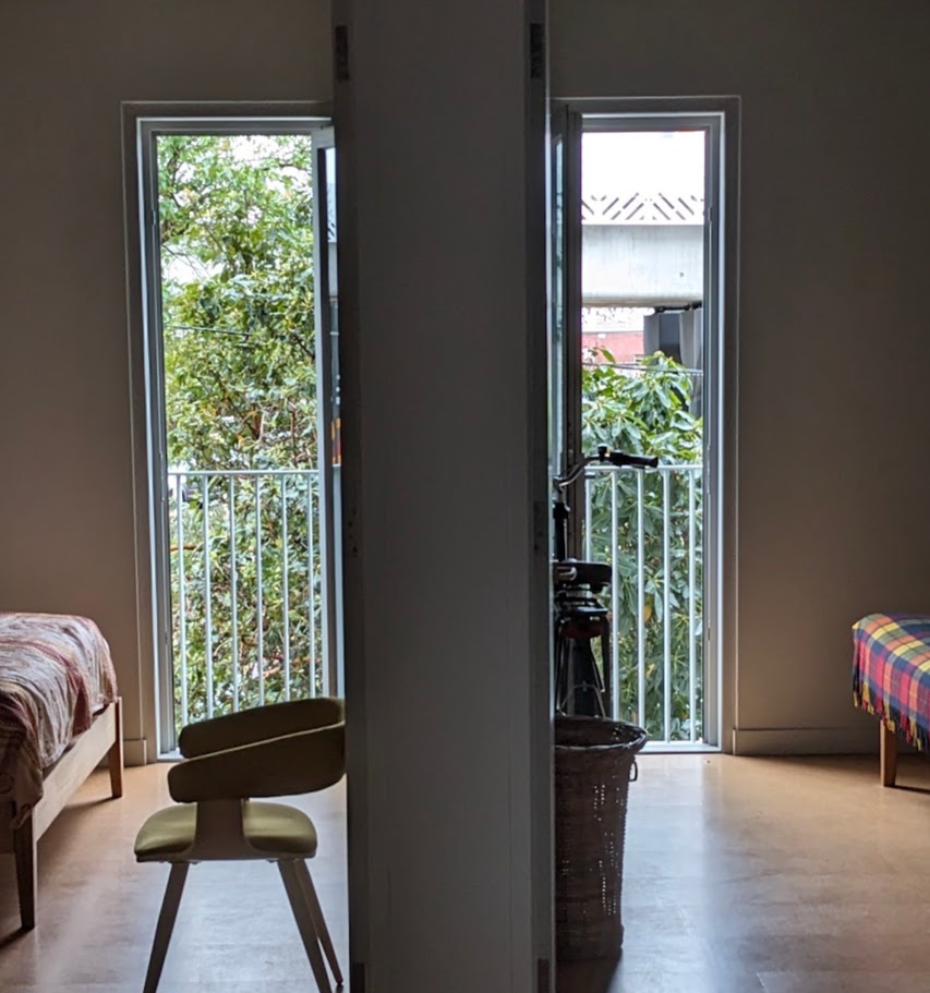 Both bedrooms are spacious and serene, each with its own Juliet balcony overlooking greenery, providing a peaceful retreat. Hydronic heating and ceiling fans ensure comfort throughout the seasons while maintaining the apartment's high-performance, energy-efficient design.