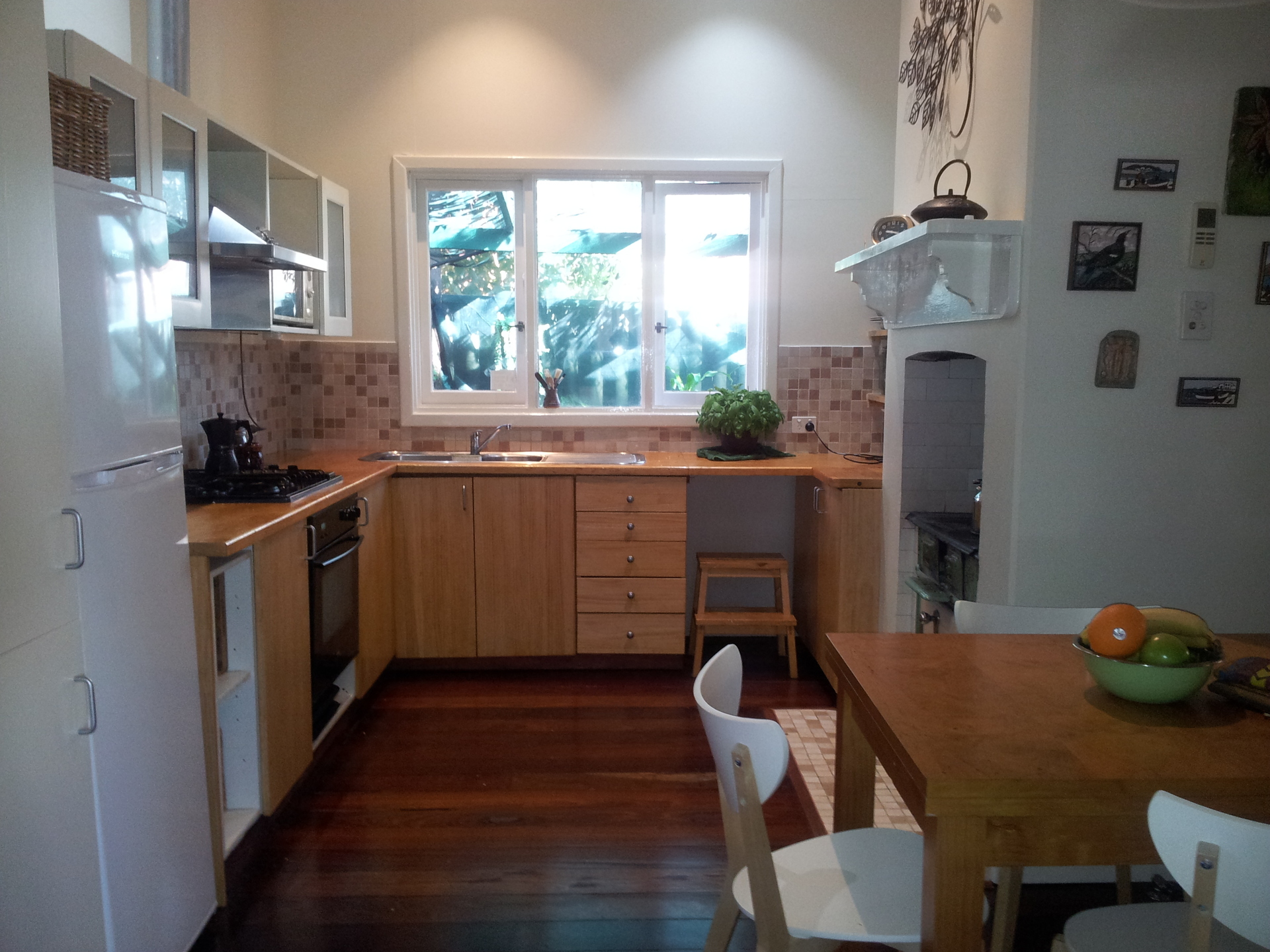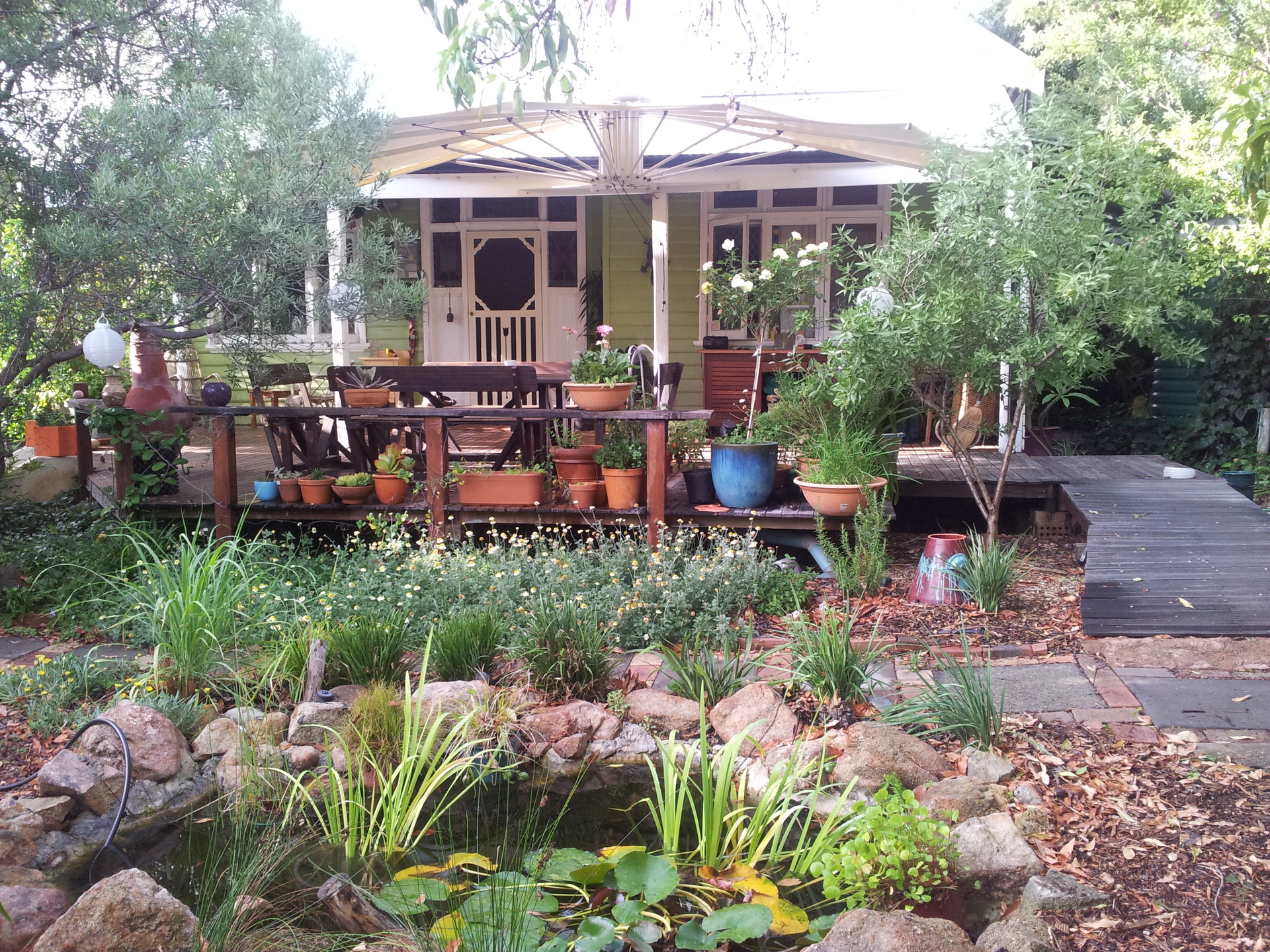 A short walk to the train. No work to do in this lush hideaway. Surrounded by garden, with fruit trees, vege patch and a frog filled fish pond. 3 brm and 1bth, a study which could be the third bedroom plus a loft study. Recently renovated and painted throughout with a working wood stove, new slow combustion fire, gas stove and bayonets, evaporative air conditioning, rain water tank, grey water outlet to the garden, jarrah floor boards and stained glass windows.