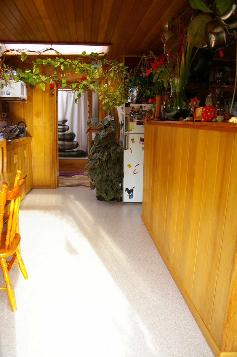 Open plan living, electric heating and stove,Timber dado and ceilings,