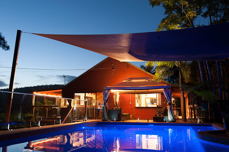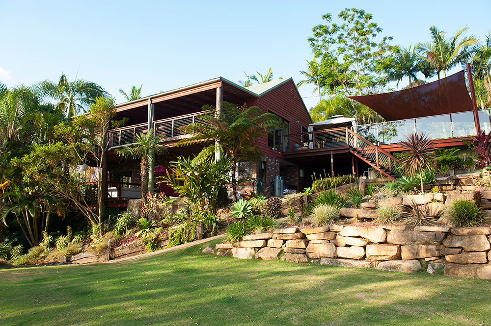 The outdoor entertaining space includes a lounge area surrounded by decks and glass fencing overlooking the large tropical pool. Every vantage point provides spectacular views over the beautiful landscaped gardens.