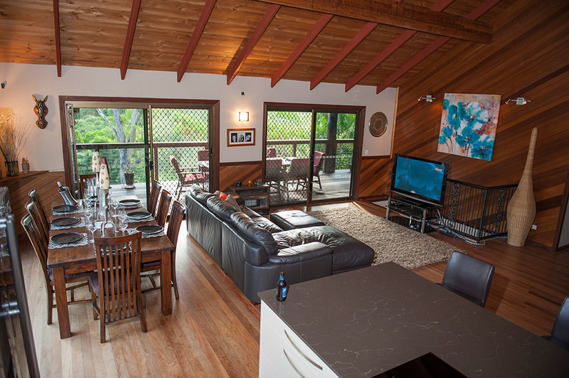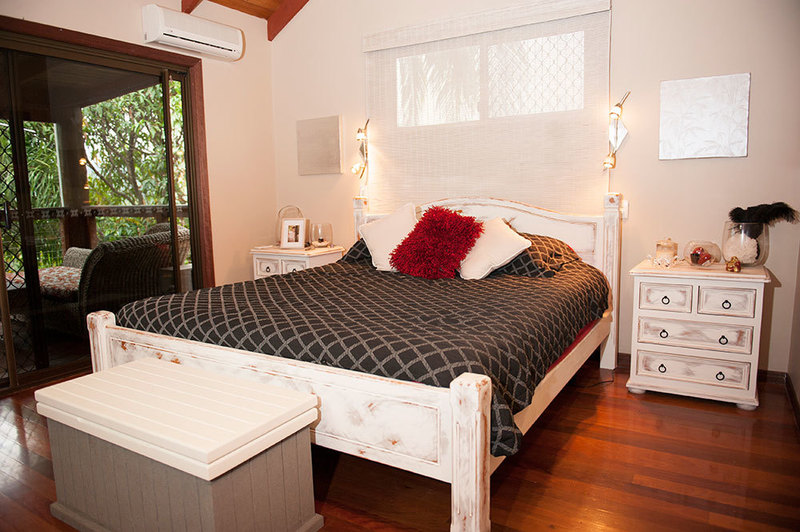 The top floor is completely surrounded with wide timber decks. These all feature modern stainless steel balustrade ensuring uninterrupted views of both the property and surrounding countryside. The spacious air-conditioned master bedroom complete with stunning en-suite looks out over the deck. A fully renovated main bathroom (with built in bath) and separate toilet are located off the main living area. Along with an air-conditioned second bedroom or office with built in cupboards.