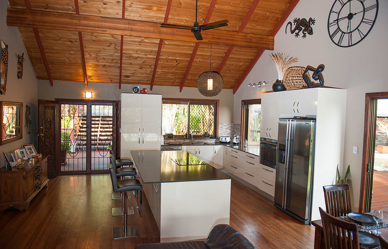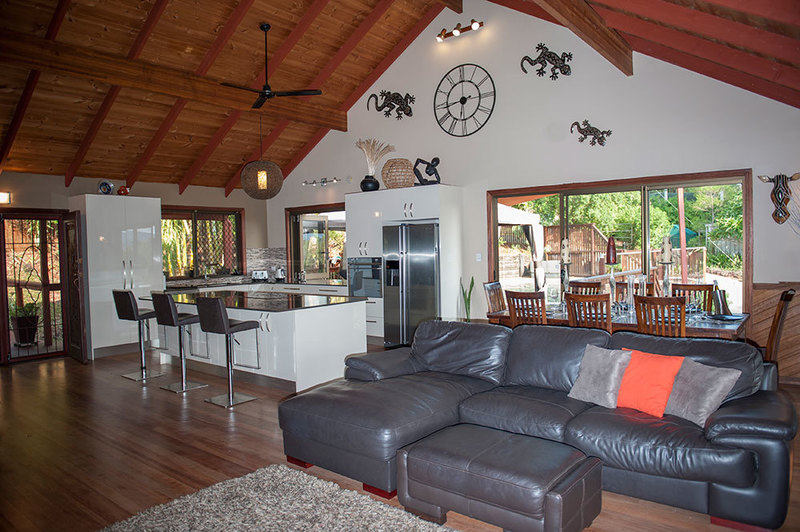 Located on a quiet cul de sac, this home is more like a 'Retreat'. The impressive entrance includes huge Balinese front doors opening into a huge open plan living area. Breathtaking views are available from every vantage point through large windows and sliding doors. The main living area features cathedral ceilings and a stylish new kitchen with modern Smeg appliances, expansive stone bench tops, endless storage space, functional servery to the pool deck and enormous breakfast bar.