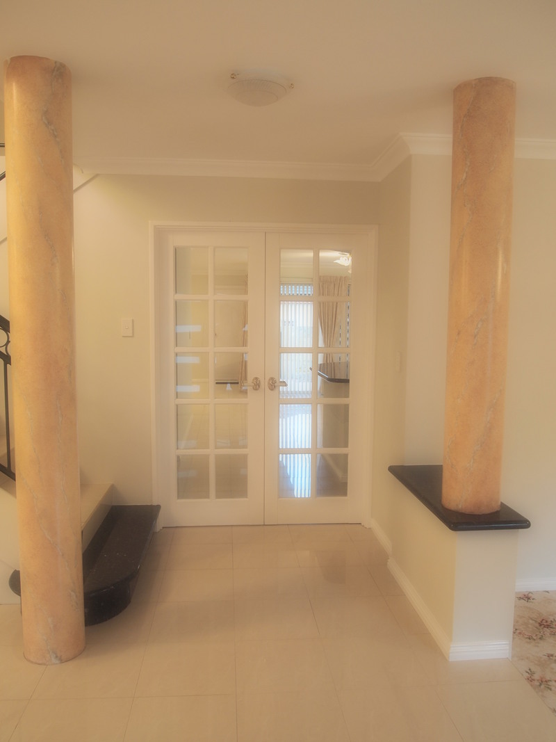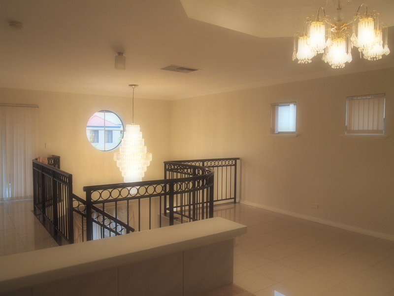 overwhelmed by large formal lounge and sitting area with beautiful chandelier coming down from the void when entering the house. The ground floor also consist of a good size Guest room, large kitchen, dining and living area with 30c height ceiling. Beautiful 'U' shaped tiled staircase with granite finished on 1st step leads to upper floor where 4 large bedrooms, retreat and bar are located. Enjoy your panoramic view when having nice tea or coffee on the balcony.