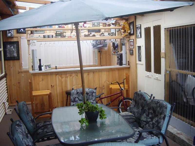 Beautiful airy sunroom with built in bar