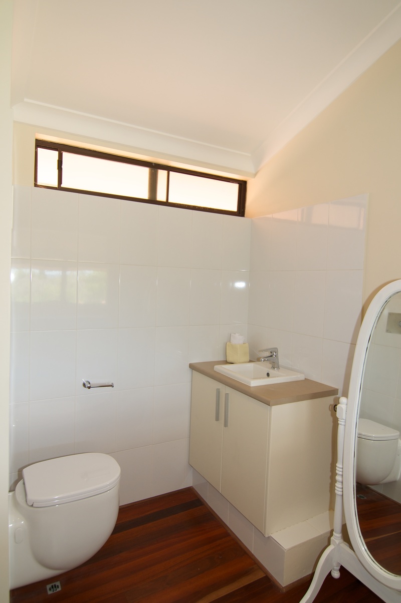 o Wall to floor tiles in the lower storey bathroom and WC.