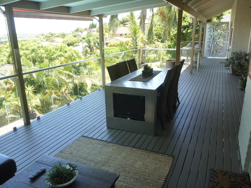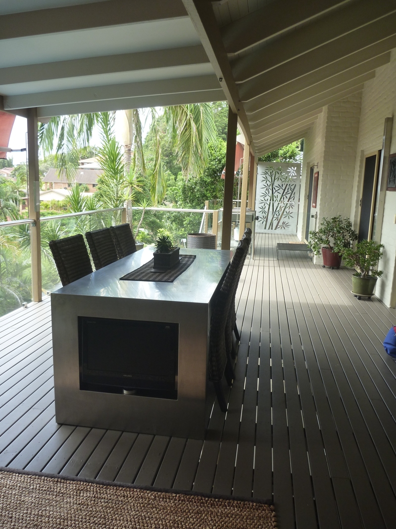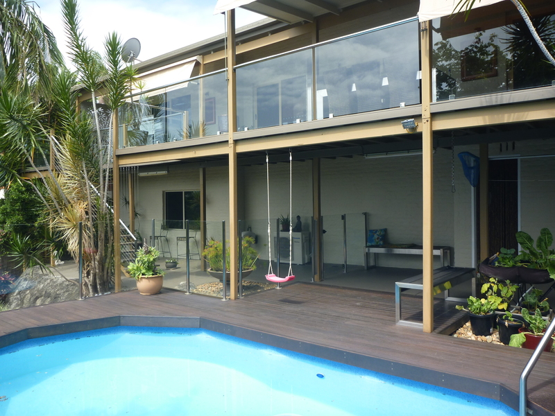 Large covered entertaining deck overlooking the pool and low maintenance landscaped gardens.