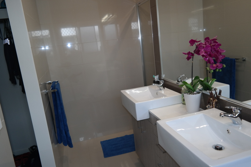 600x600 cream porcelain tiles throughout living areas and bathrooms both tiled to ceiling
