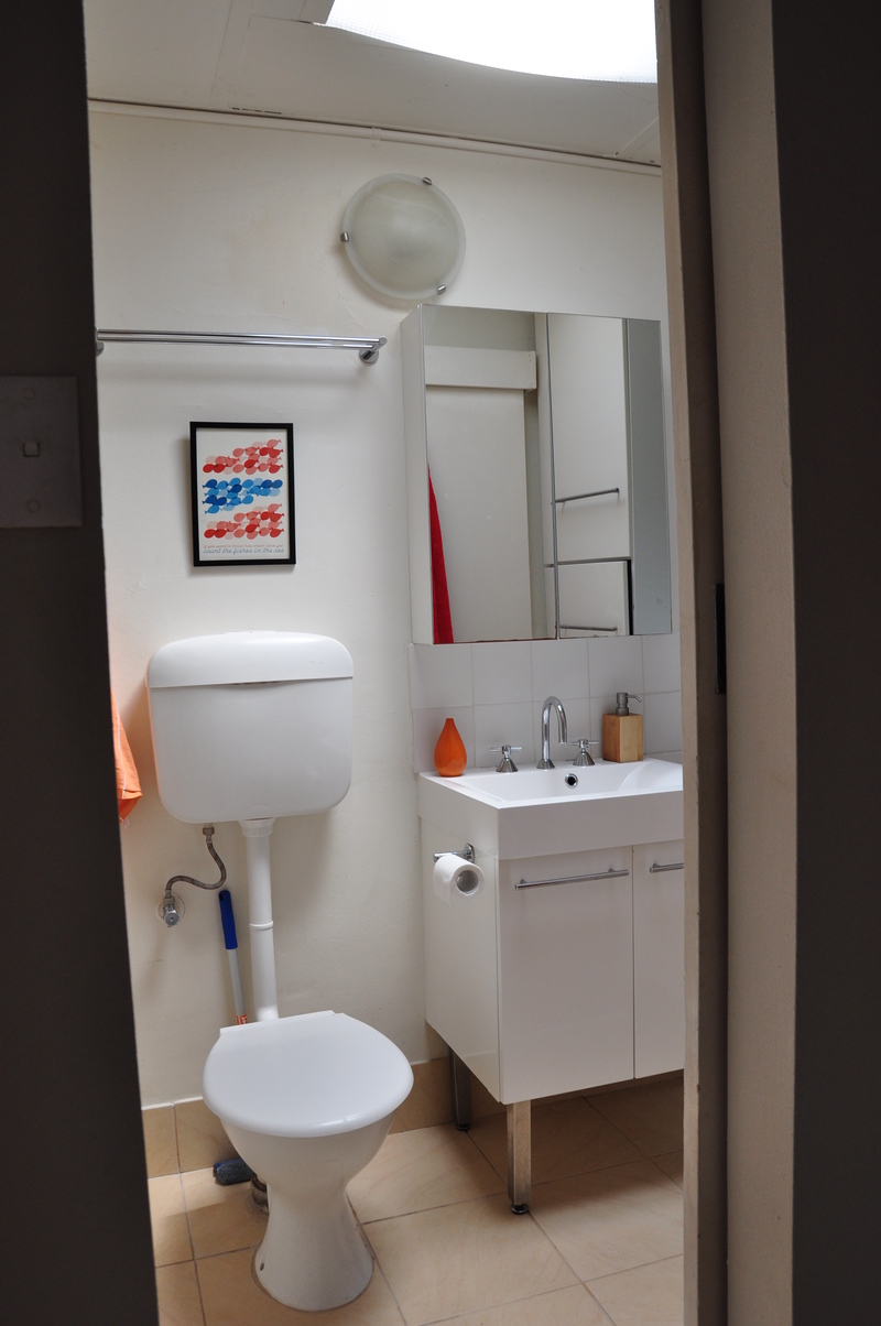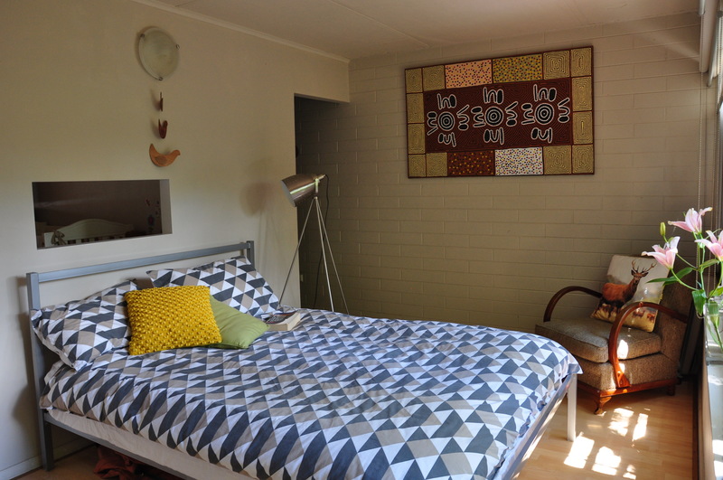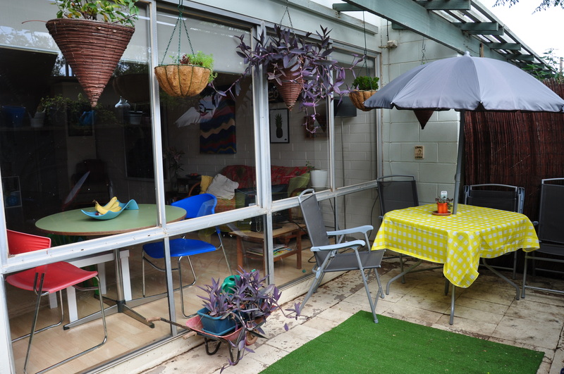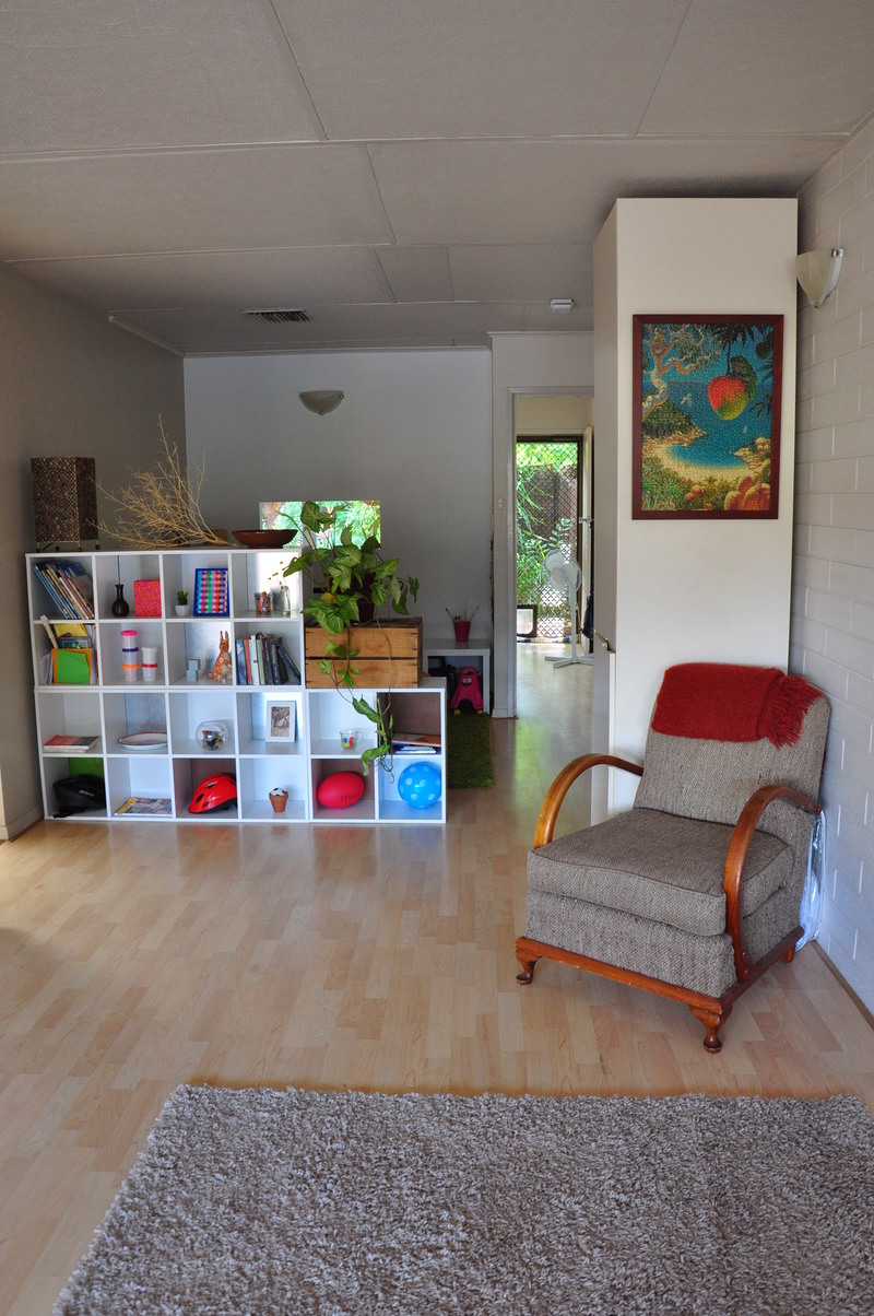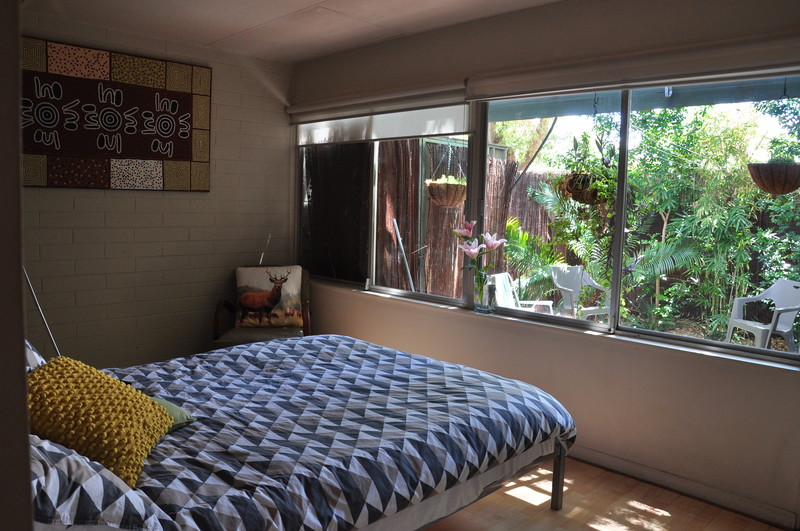 Light coloured timber floors and freshly painted walls gives a clean and modern feel, which extends through the bathroom and the bedroom. The kitchen features ample storage drawers and shelving, gas cooking and extra high benches. Originally a two bedroom unit, the space has been converted into a large one bedroom, maximising open plan living. Flexibility is given to the space with the use of a room divider that creates a private extra room/study with internet/phone connection and extra shelving/cupboard space. The large bedroom has a walk in robe with good shelving and hanging space, and a wall of windows allows you lie in bed and overlook the leafy, shaded rear courtyard - very calming and totally private.