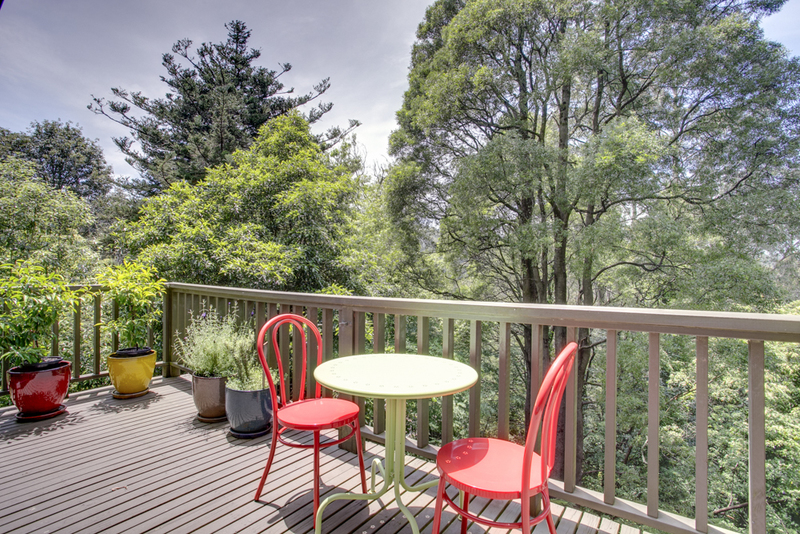 This home is an enchanting hideaway only a short stroll to Sassafras village. A fluid, open plan design with a leafy outlook and lots of natural light. It has a balcony plus deck to enjoy the outdoor surrounds. Three bedrooms, two bathrooms (both just renovated), bamboo flooring throughout with wool carpet in the bedrooms. There is a Coonara-style wood heater, reverse-cycle split system air conditioning, gas ducted heating, new roof insulation, underfloor insulation and a triple carport. The house is reached via a quiet access road.
