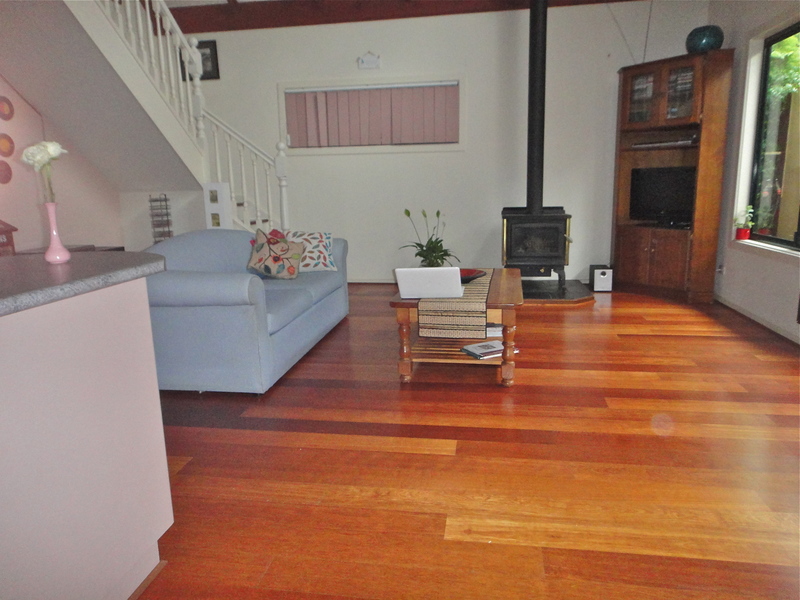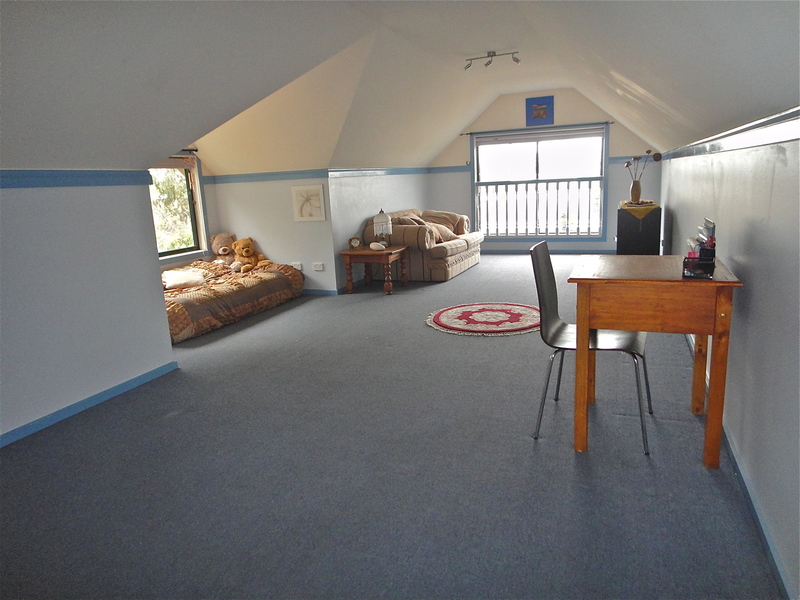 An open-space downstairs living area looks out onto a cool and serene outdoor entertainment space. With views to the hills, the bright and airy upstairs rumpus room could be utilized as a second living area, fourth bedroom or artist’s studio. Extras include combustion heater, air-conditioner, dishwasher, generous laundry storage, area suited to a fernery, garden shed, rainwater tank, firewood shelter.