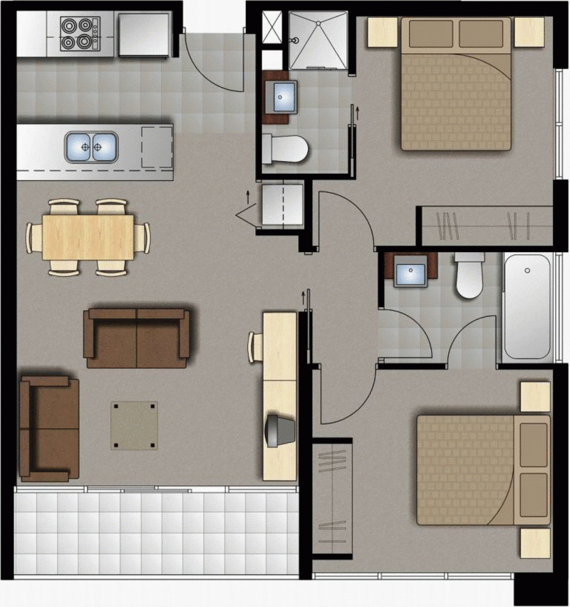 * 2 bathrooms.