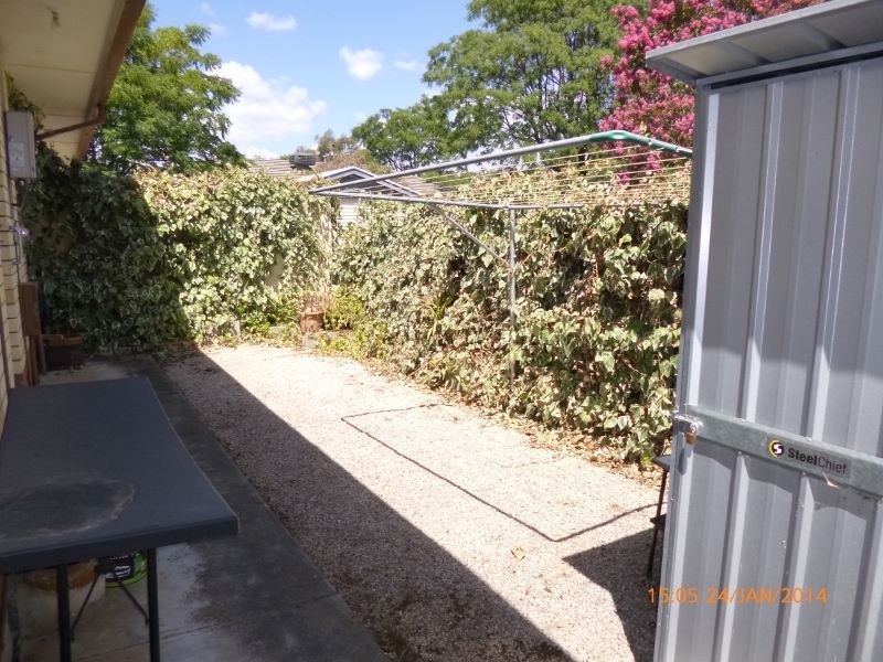 Secure double brick single story 2 bedroom unit on a jacaranda lined street in a group of three. The unit faces onto Holton Street. It has a front garden with locked gate and 6 foot wall. A lovely glory vine shelters the front of the unit and there is a paved area and lawn. Secure back yard with shed. Floorboards throughout except second bedroom has neutral new wool carpet. Reverse cycle air conditioning. Ceiling fans in main bedroom and lounge. Built in wardrobes in both bedrooms. Renovated sparkling white bathroom and roomy renovated kitchen with gas stove and dining/eating area. Gas water heating. Key locked windows with screens. Separate inside laundry. Northerly aspect.
