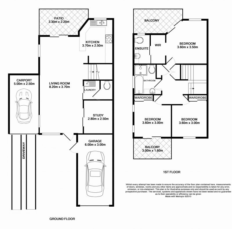 - 3 bedrooms all with built ins, 2 with private balconies plus study downstairs