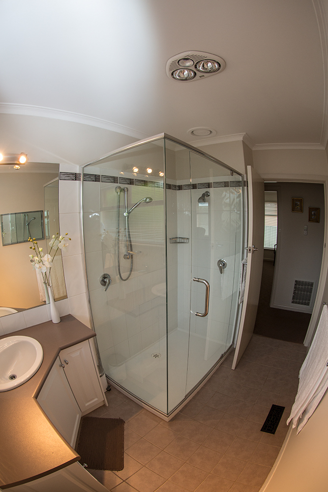 Modern Bathroom with double shower. The neutral tones and quality carpet flow throughout the home, including 3 double Bedrooms all with BIR's. Back to base 24/7 Security. Fabulous storage space, Central Gas Heating, Reverse Cycle AC and many other features.