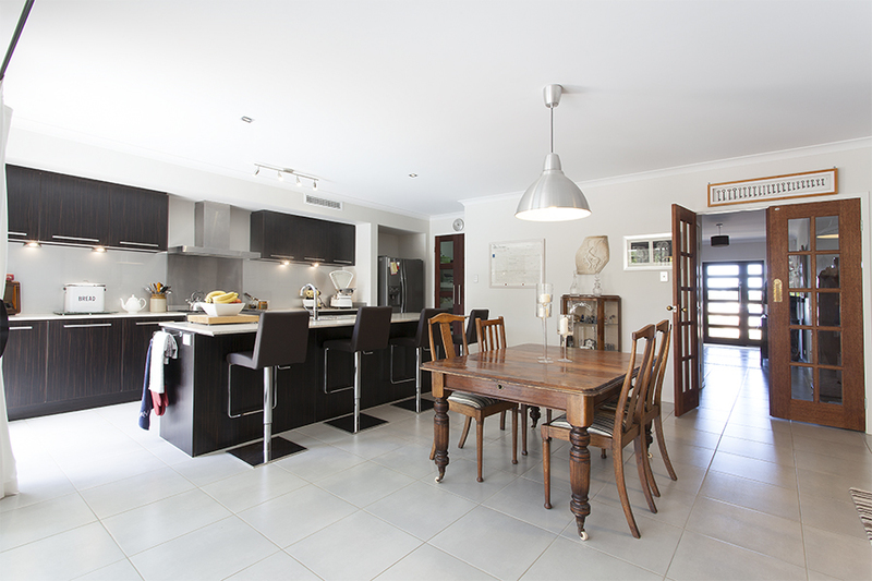 Add to that a large entertaining area which looks out onto an in ground salt water pool with built in spa. A large media room and a study, which is fully fitted to be a library. The large kitchen is equipped with a middle island work-top, 900mm oven with gas stove top, dishwasher, microwave and a generous walk-in butlers pantry with an adjacent dining/living area.