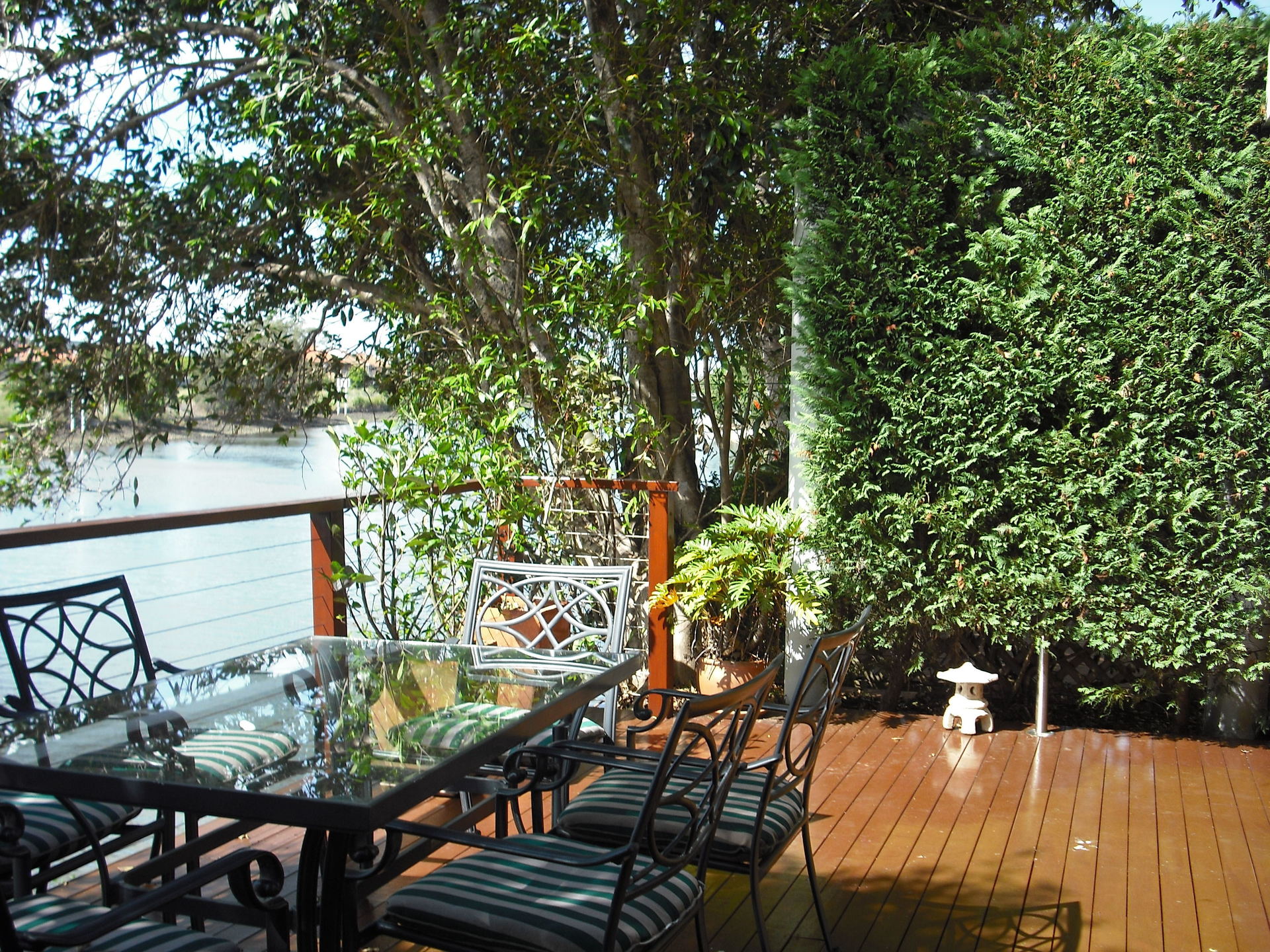 A spectacular deck for entertaining which provdes the feeling that any closer you would have to be a fish.